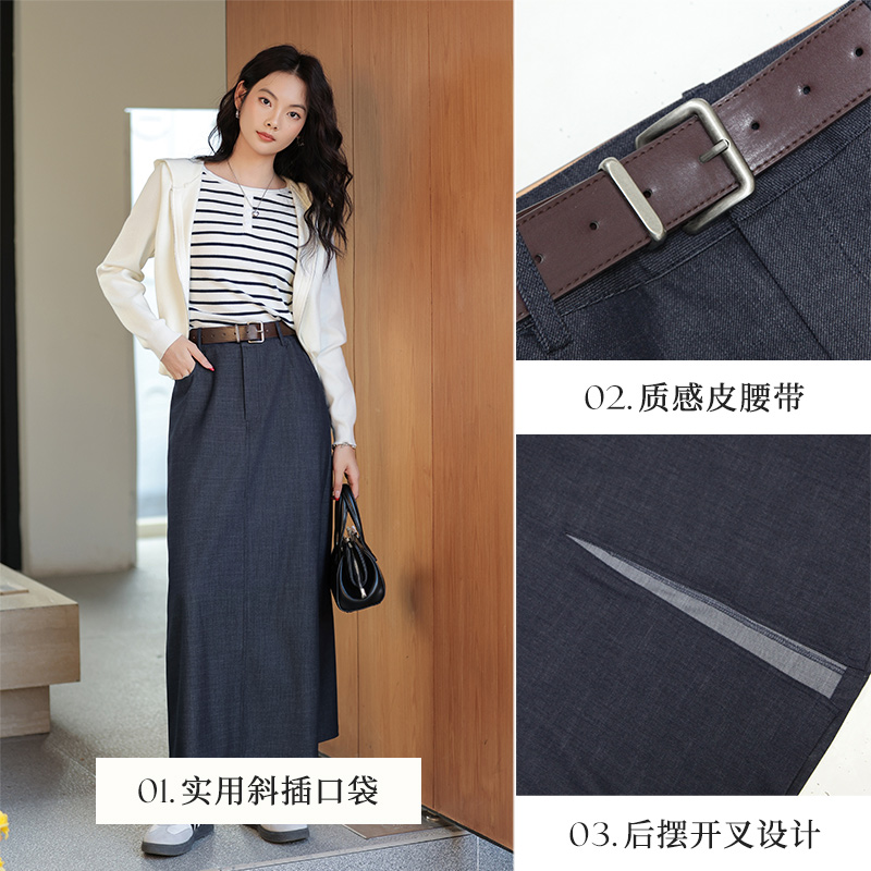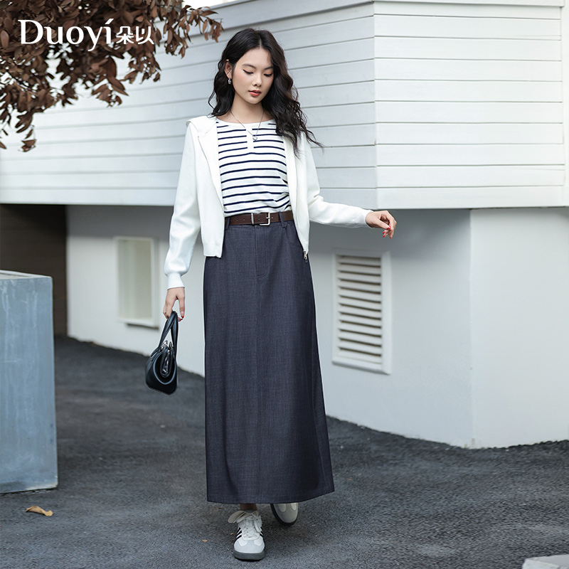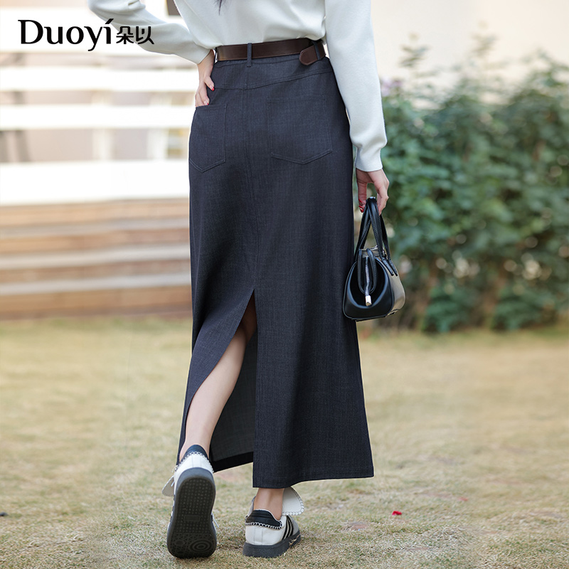 朵以2025春季新款复古港风口袋高腰显瘦半身裙A字裙长裙配腰带