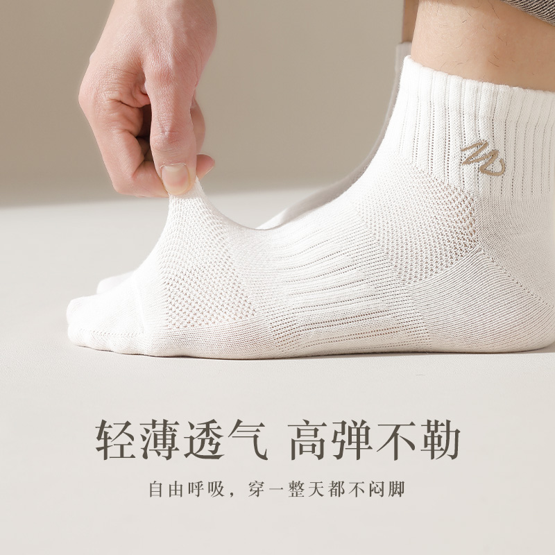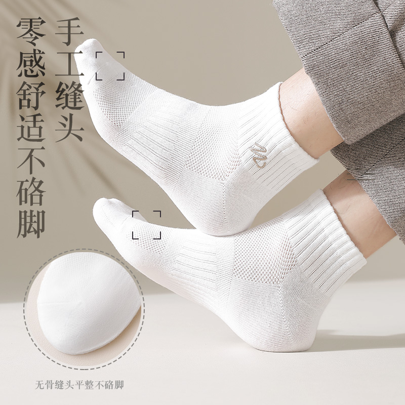 诸暨袜子男中筒袜春秋款纯棉底吸汗防臭透气男士白色秋季运动短袜