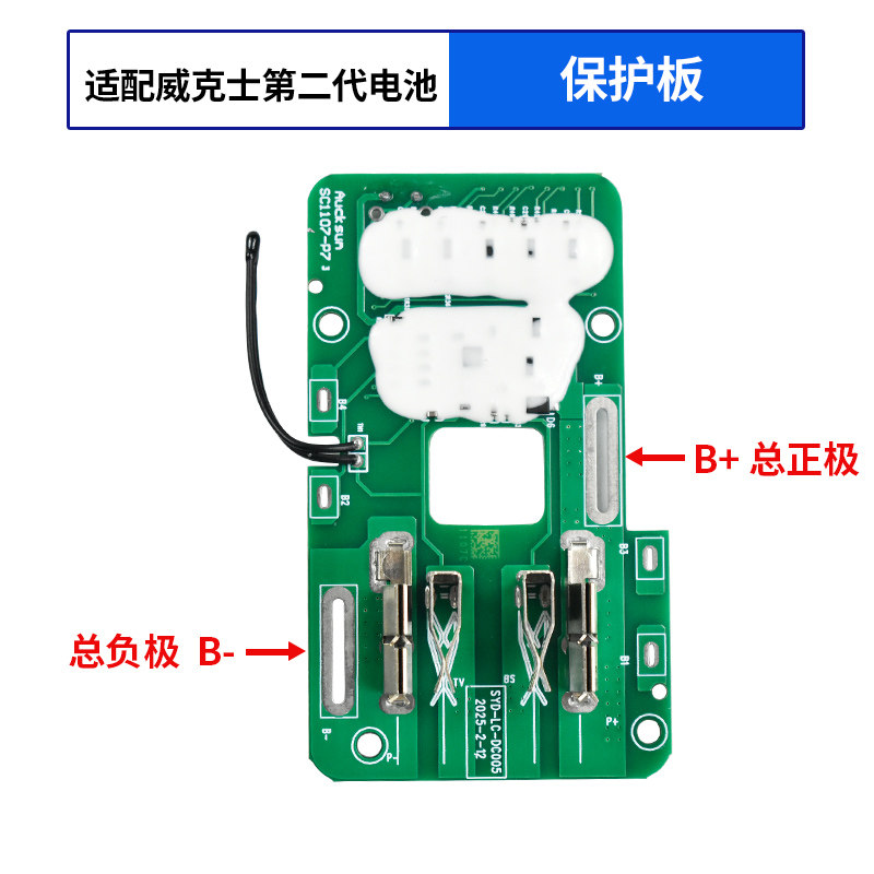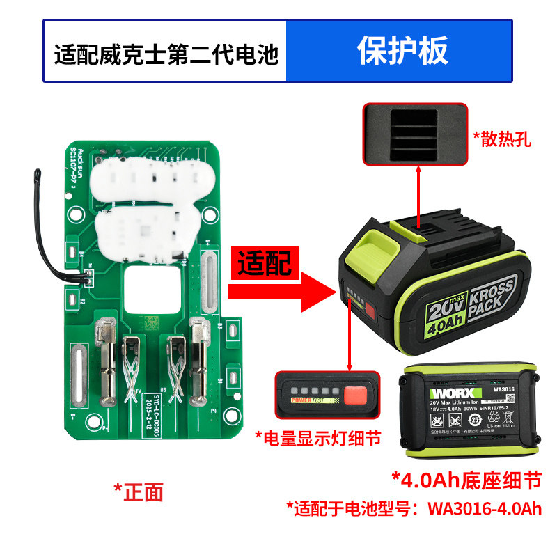 质竞优适配威克士大插脚款WA3016/3027锂电池带灯显温控20V保护板