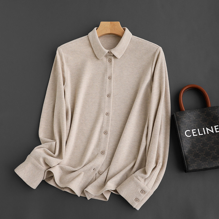 舒服炸了!真丝+山羊绒=柔软+保暖!绒面直筒衬衫打底上衣女秋冬