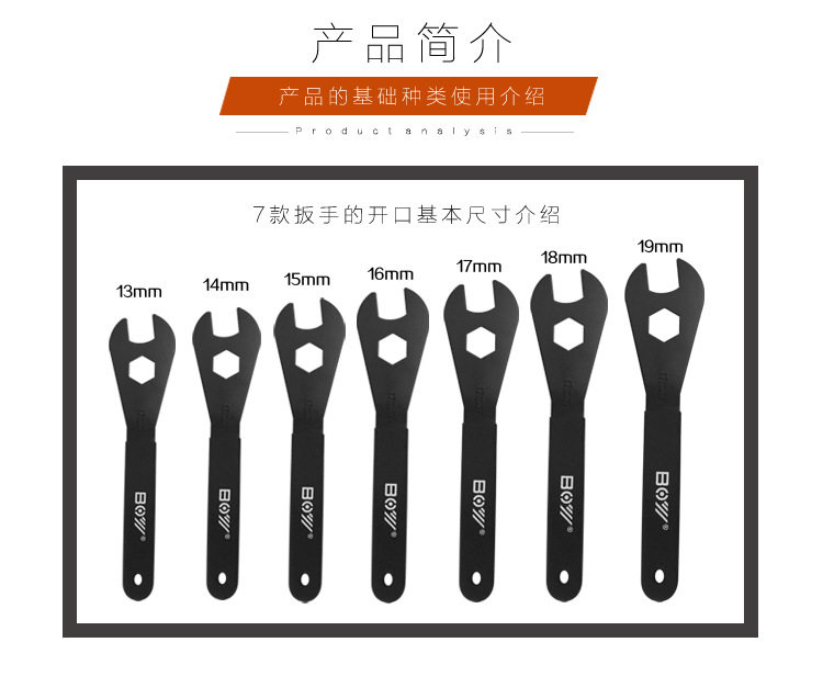 BOY山地自行车死飞花鼓薄片扳手修车维修修理工具13mm14 15 16 17