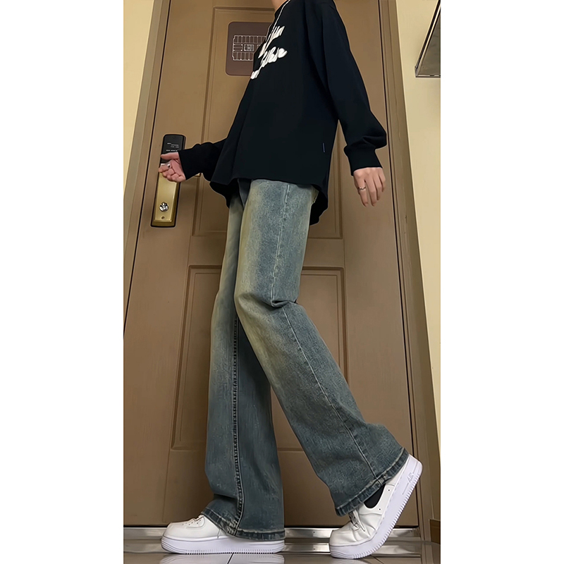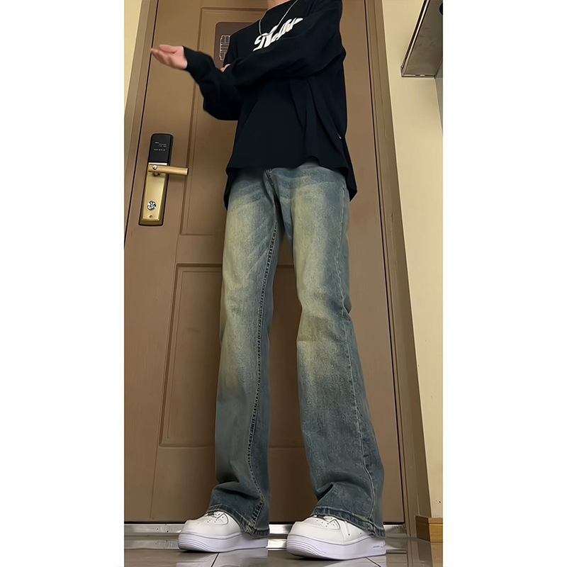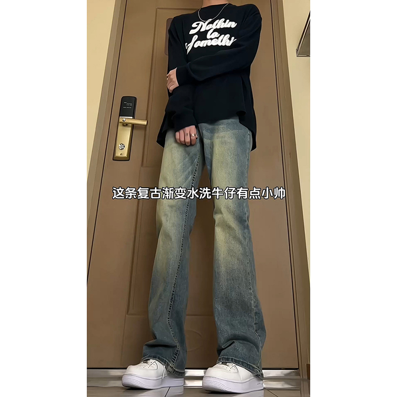190高个子微喇叭牛仔裤男生加长直筒裤子115cm潮牌宽松复古蓝水洗