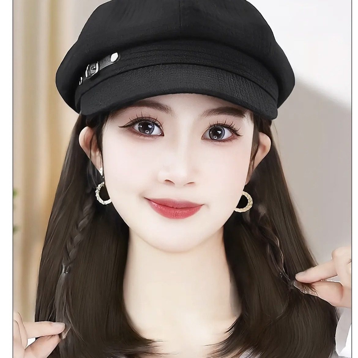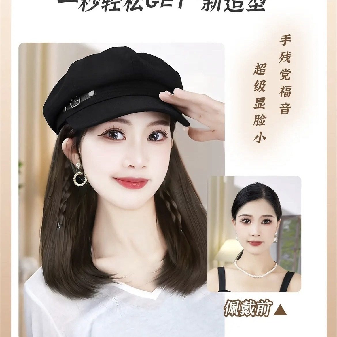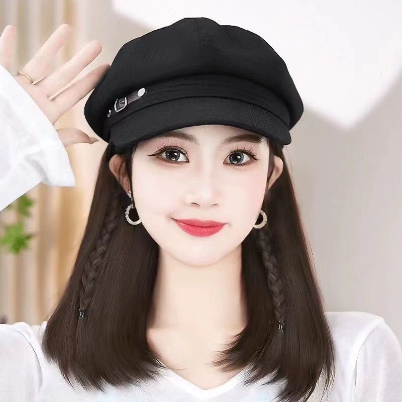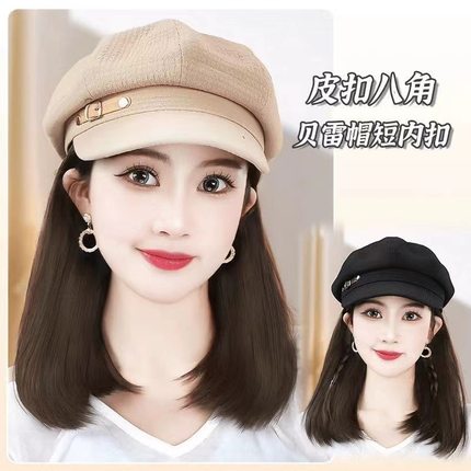 帽子伪娘假发一体时尚齐肩锁骨百搭报童帽日常女装大佬cos用品