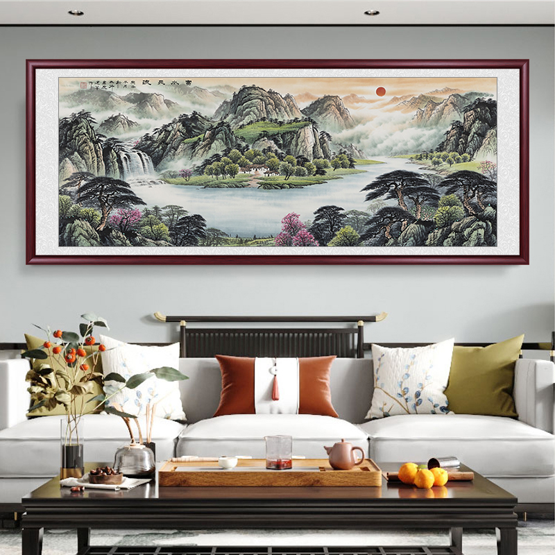 聚宝盆旭日东升客厅挂画国画沙发背景墙画办公室字画装饰画靠山图