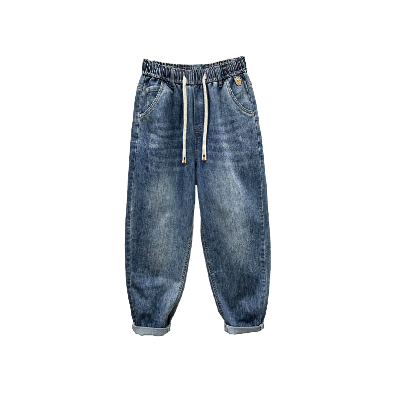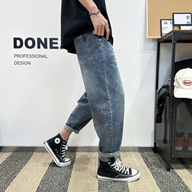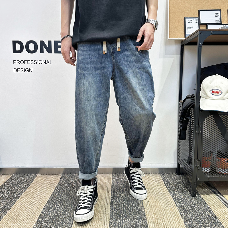 高品质休闲牛仔裤男款宽松哈伦裤2025春夏薄款水洗蓝九分小脚裤潮