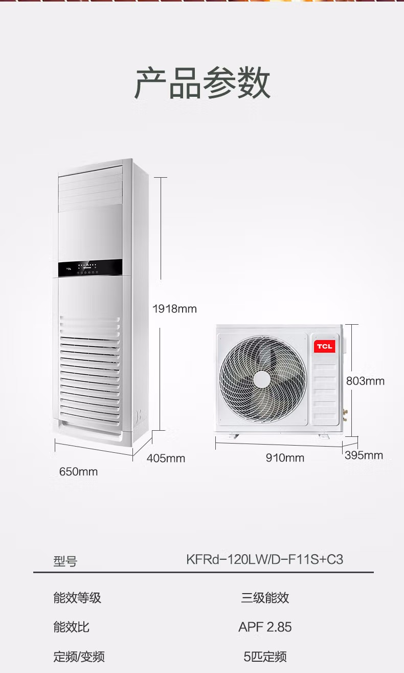 TCL KFRd-120LW/C23S大5P立式柜机 三相电380V动力电五匹空调商用