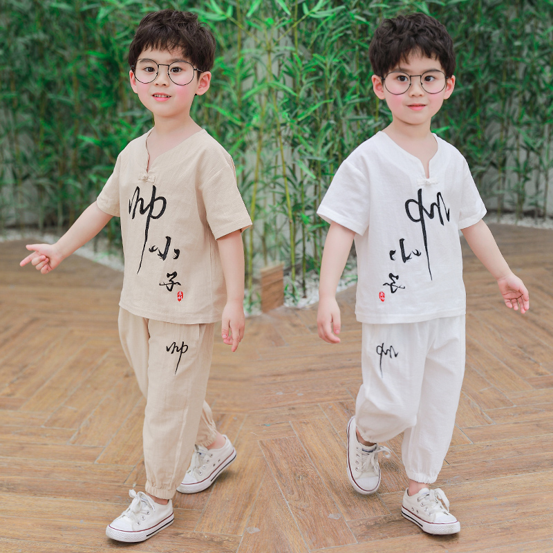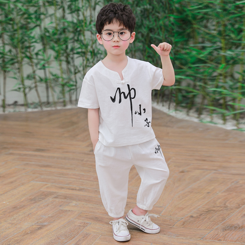 男童2025夏季新款套装中国风麻棉两件套休闲帅气中小童复古唐装潮