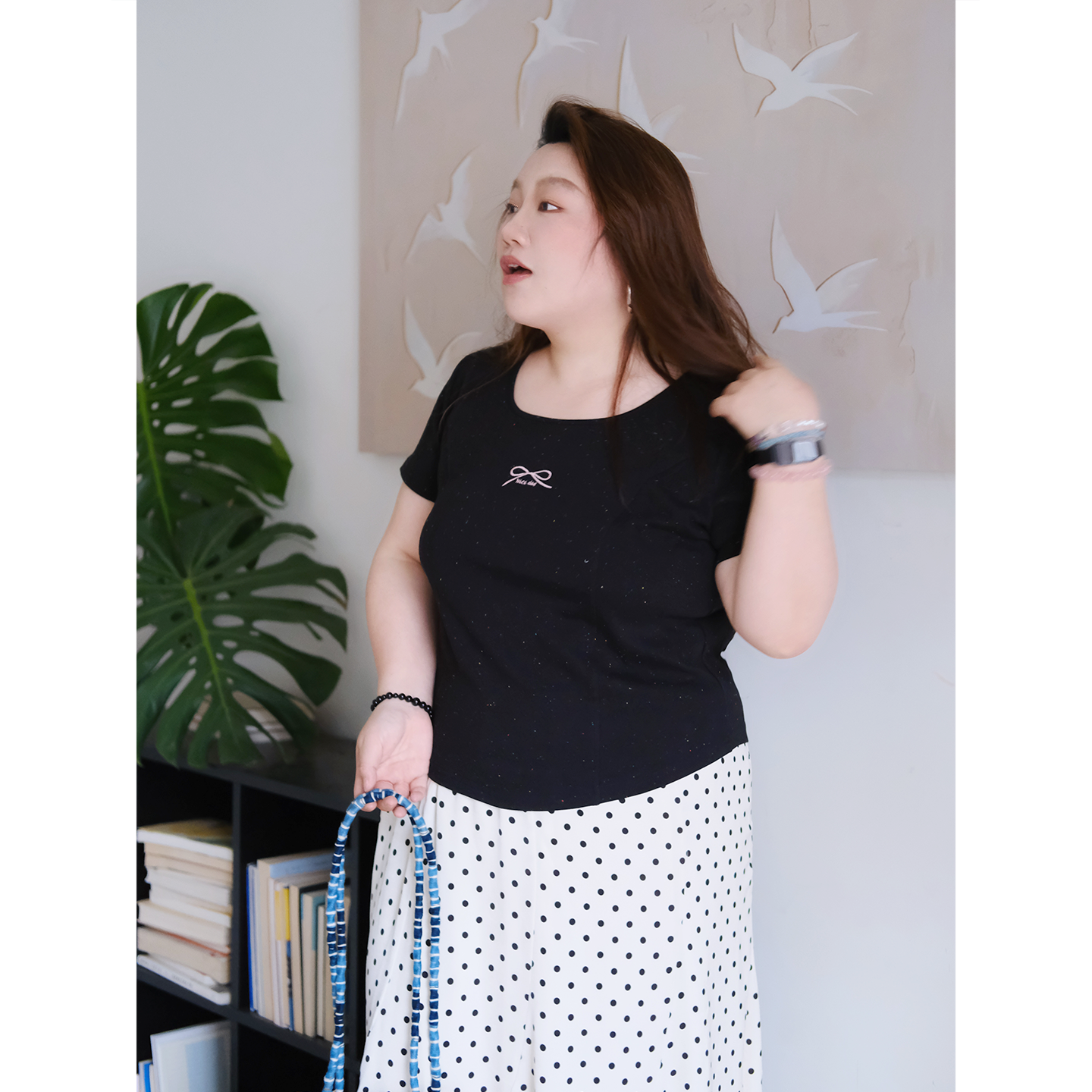 zooobaby05/16韩系减龄彩点小刺绣蝴蝶结短袖T恤上衣