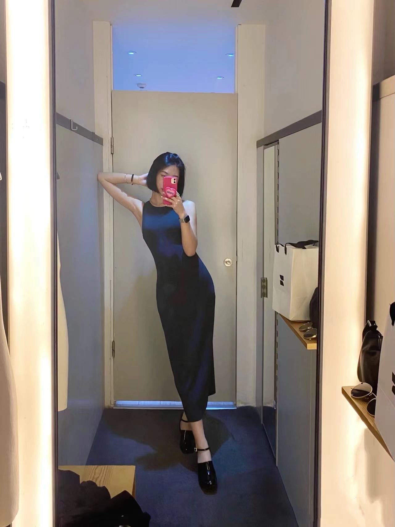气质轻熟通勤显瘦连衣裙夏季女装中长款修身针织吊带裙F6280
