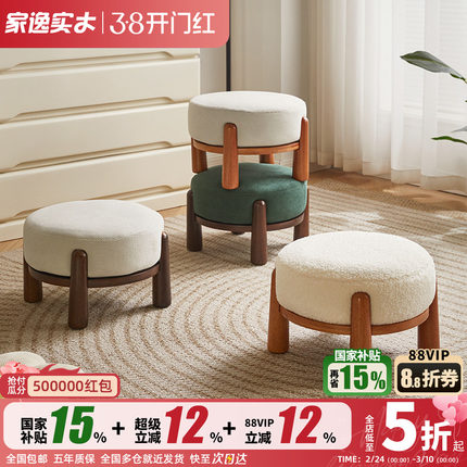 家逸实木小凳子家用矮凳简约垫脚凳客厅坐墩软包小板凳沙发脚踩凳