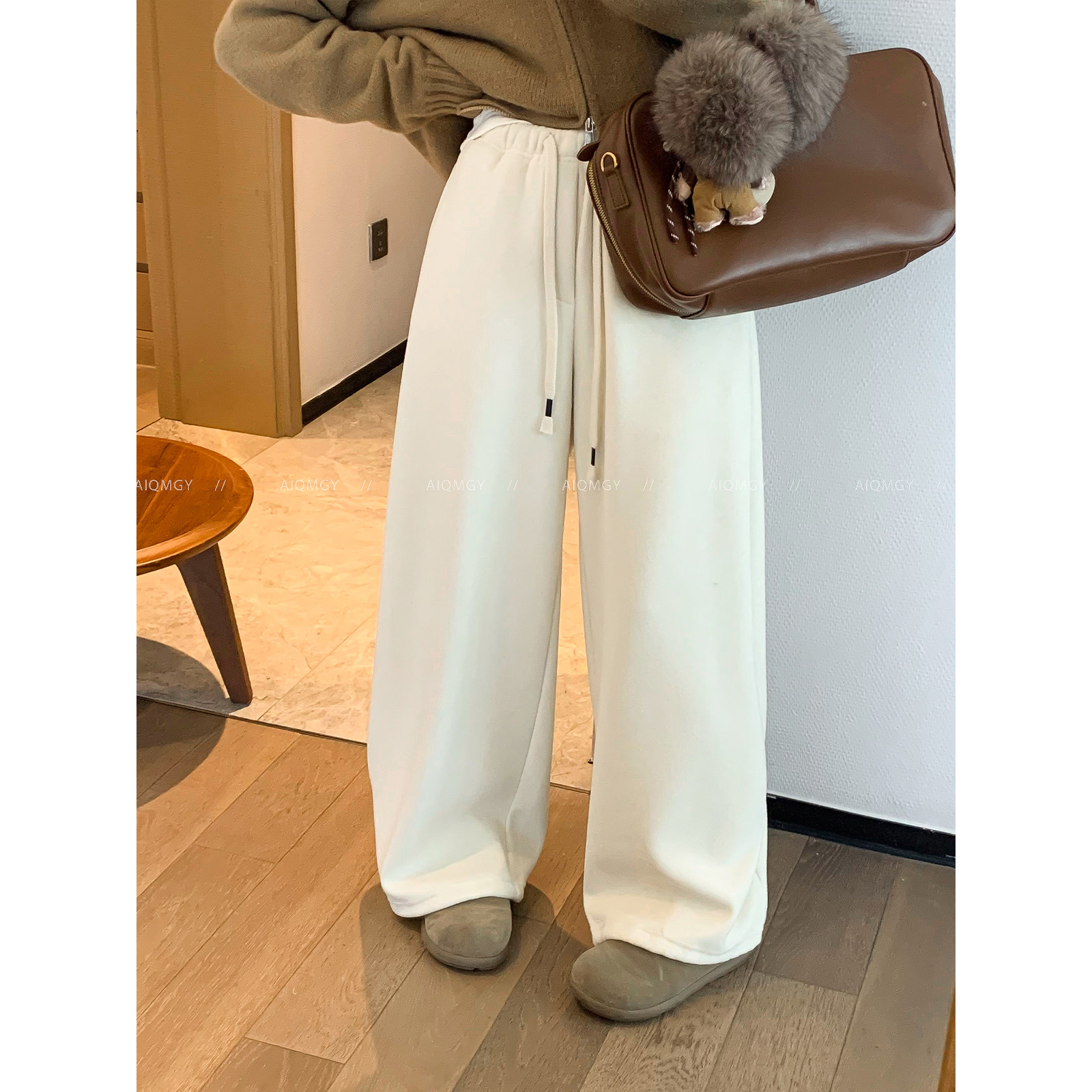 爱情魔鬼鱼 2025冬装新款女装气质阔腿长裤子宽松百搭加绒休闲裤