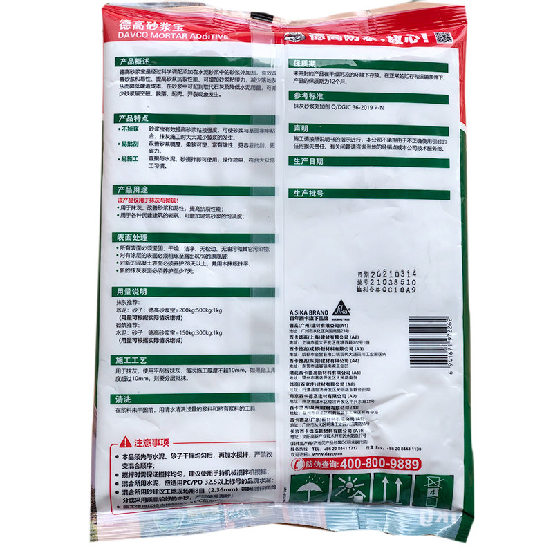德高砂浆宝强力浓缩抹灰砌筑墙专用水泥胶贴瓷砖胶袋装1kg砂浆精