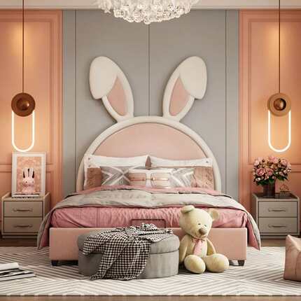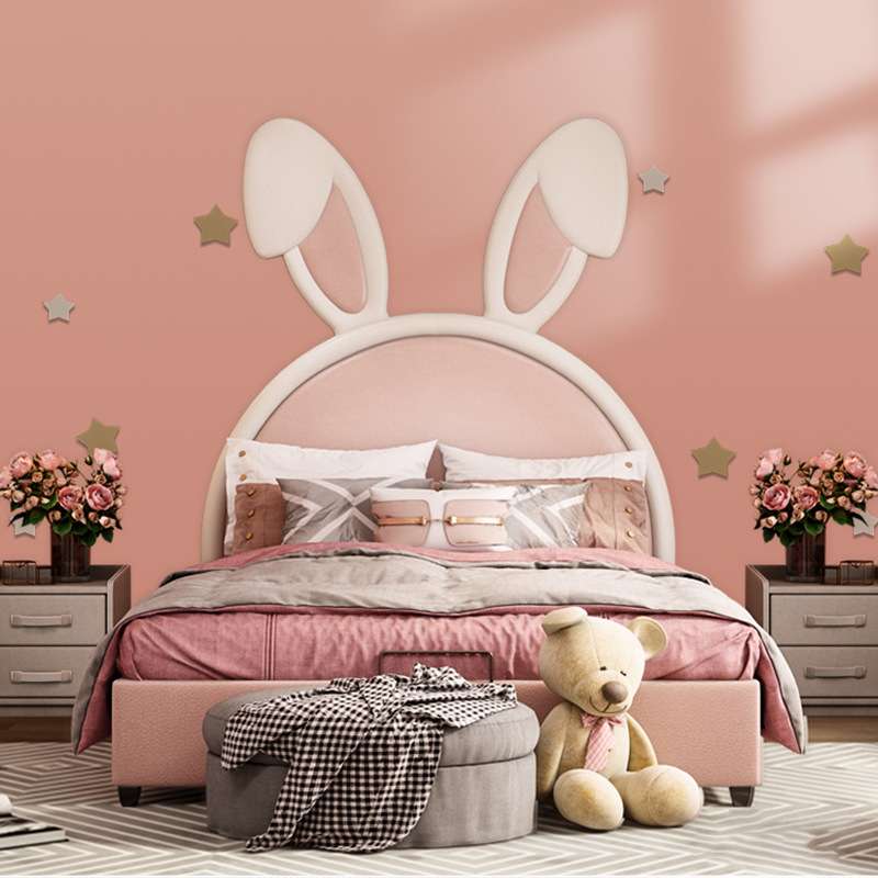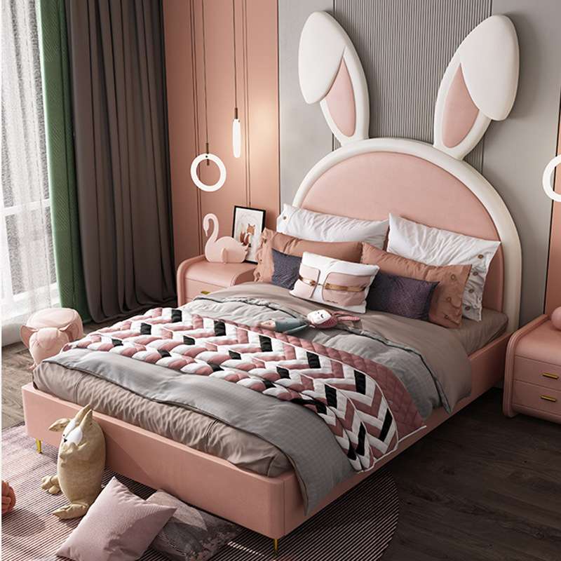 兔耳朵儿童布艺床北欧现代简约创意网红ins风少女粉色女孩公主床