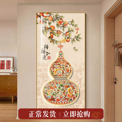 花瓶葫芦玄关装饰画柿柿如意新中式入户正对门晶瓷画走廊过道挂画