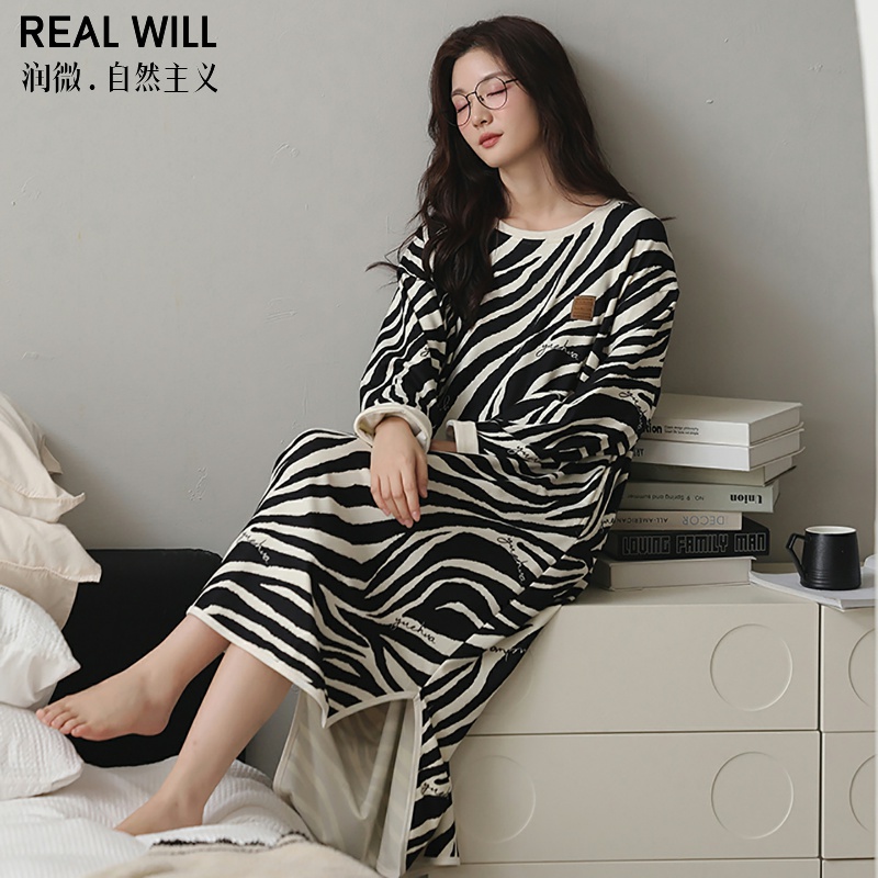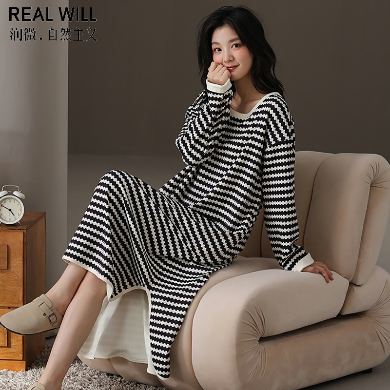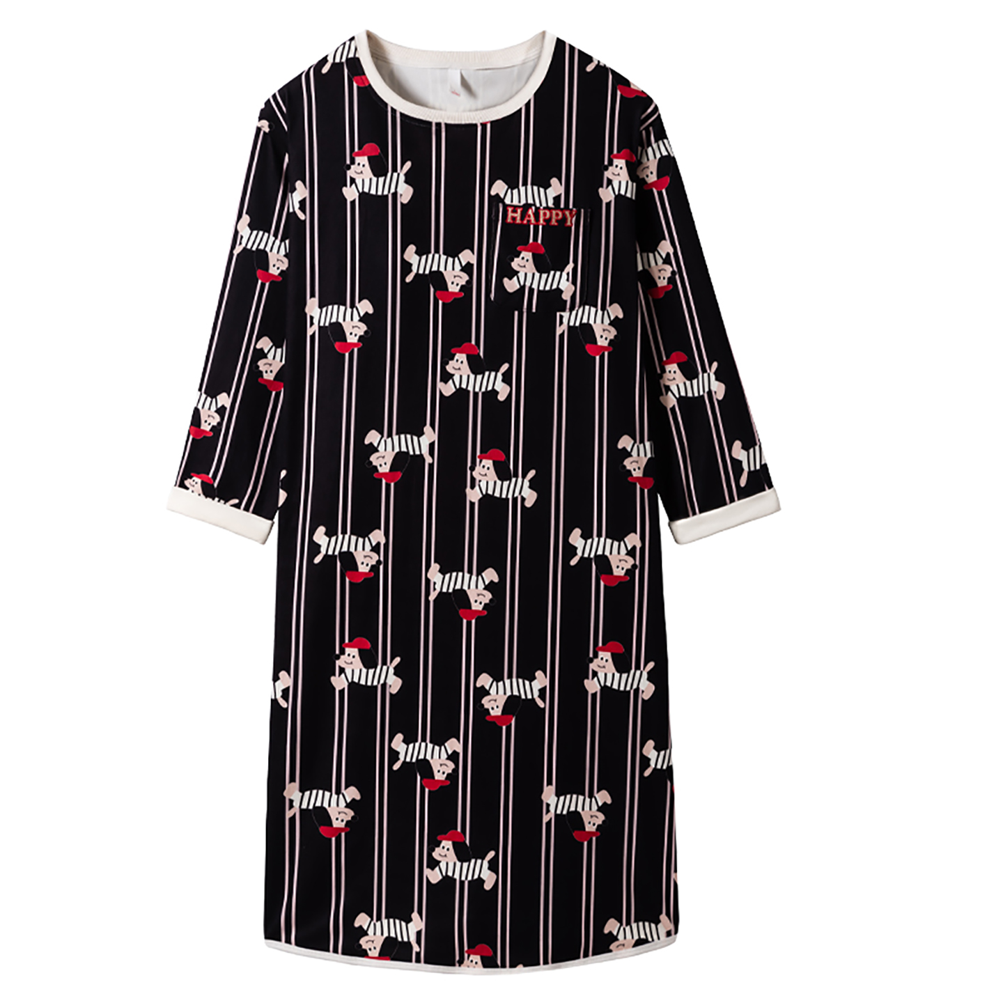 润微冬季睡裙女士德绒长袖薄绒秋冬新款套头青年连衣裙家居裙睡衣