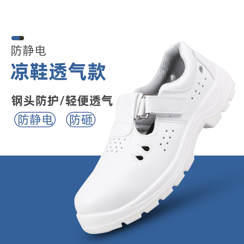盾王凉鞋白色防静电劳保鞋男钢头防砸无尘静电鞋食品电子厂工作鞋