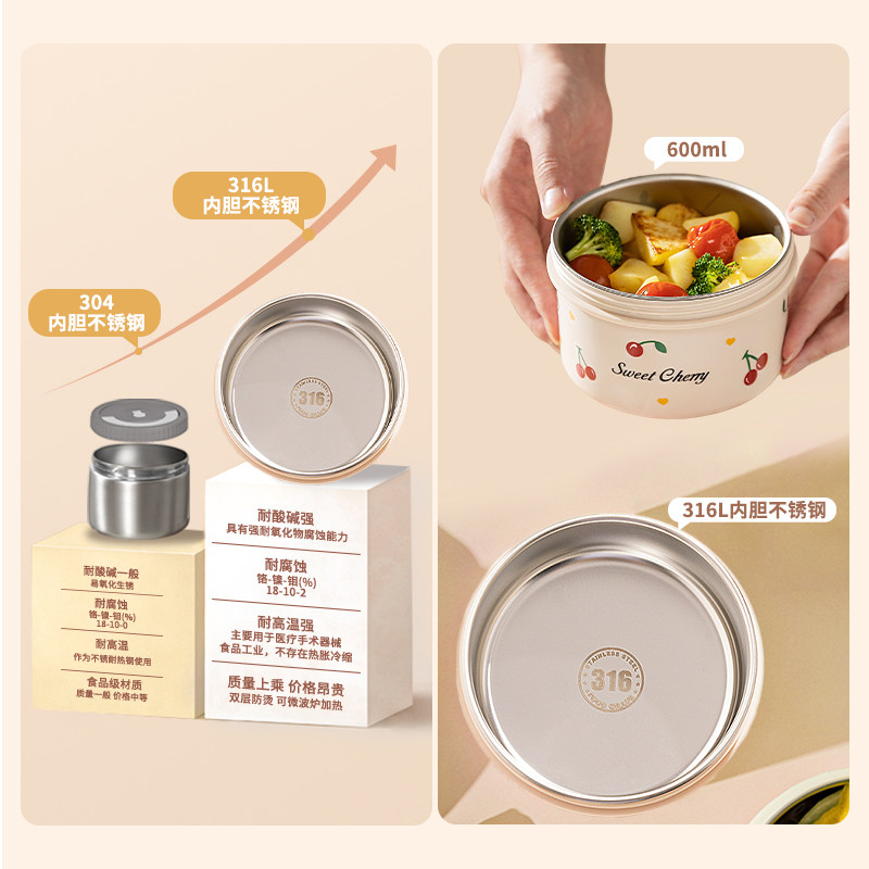 摩登主妇316L不锈钢保温饭盒微波炉加热碗上班族儿童携带便当餐盒