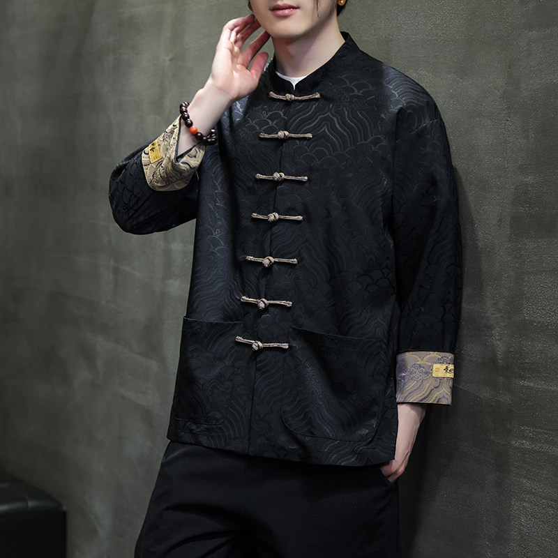 中国风男装春夏季新中式立领衬衫男士古风汉服盘扣长袖唐装上衣薄