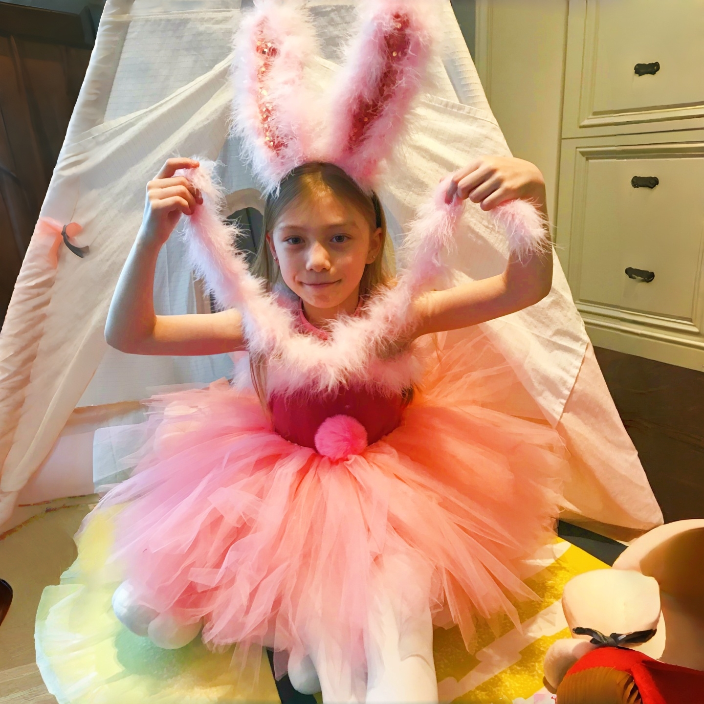 儿童兔子演出服万圣节服装女童可爱粉红色蓬蓬裙高端芭蕾公主宝宝
