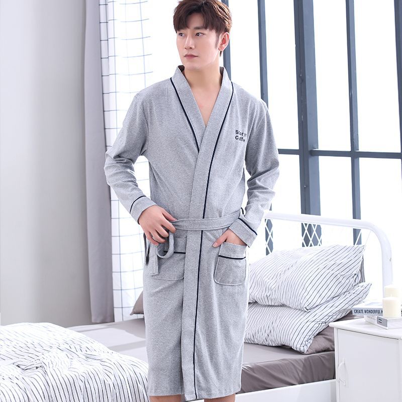 美梦春秋季睡袍纯棉男士长袖中青老年浴衣睡衣加大码浴袍男家居服