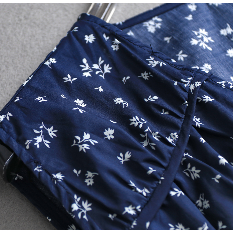 碎花裙侧边系带显瘦V领度假风打褶背心裙夏季新款女裙连衣裙C507