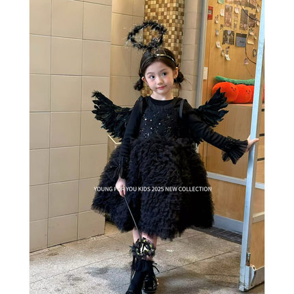 YFY秋冬女童背心裙黑天鹅公主裙蓬蓬裙万圣节连衣裙生日礼服恶魔