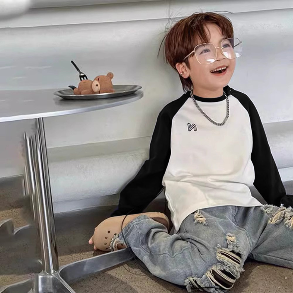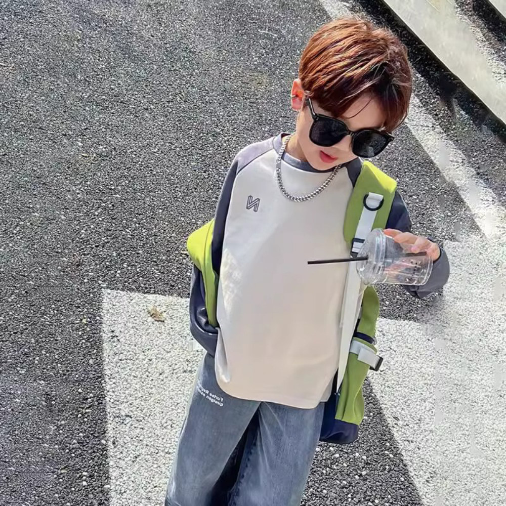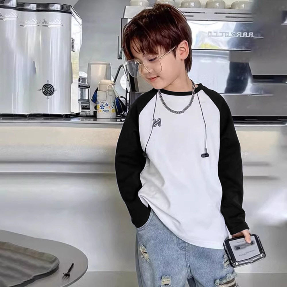 男童插肩长袖t恤2025春秋新款中大童纯棉内搭打底衫儿童早秋装潮t
