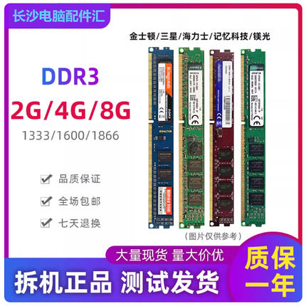 金士顿正品内存条4G/8G/DDR3支持1333/1600/1866台式机原厂兼容