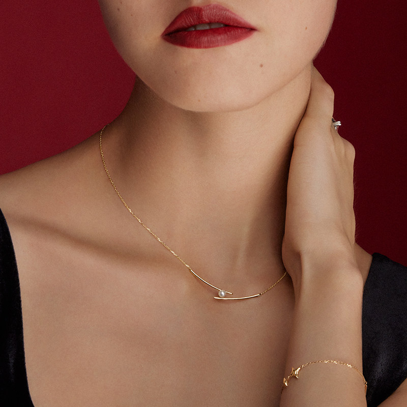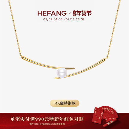 HEFANG何方珠宝筷子锁骨链14K金珍珠轻奢百搭饰品新年礼物