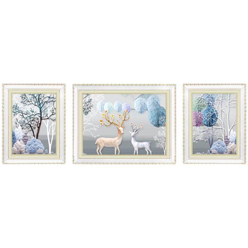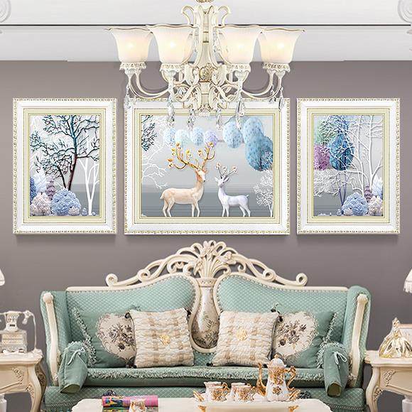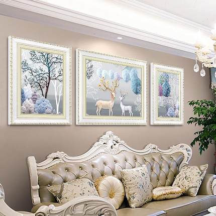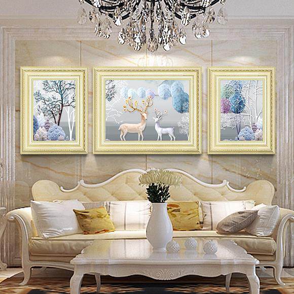现代欧式挂画客厅装饰画壁画简欧沙发背景画墙画三联麋鹿画餐厅画