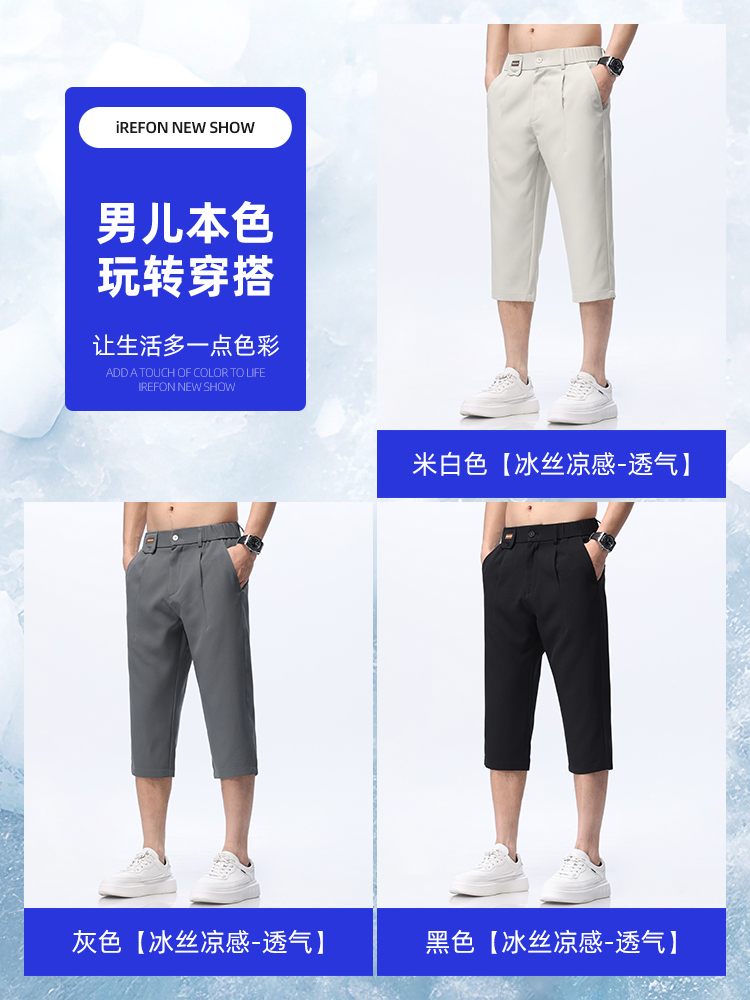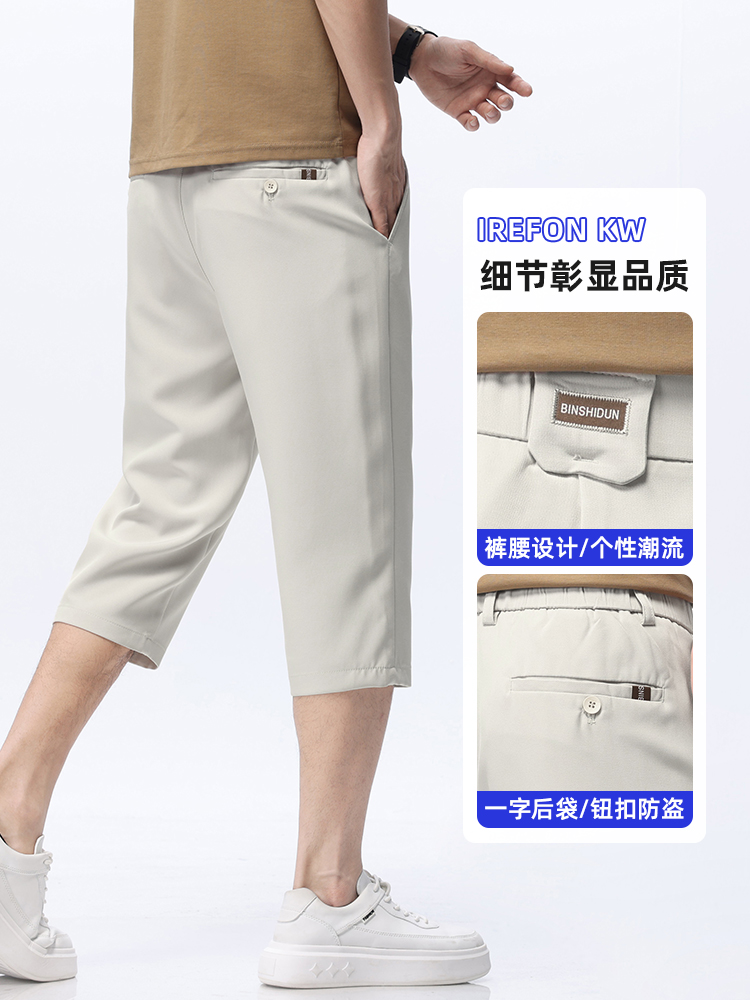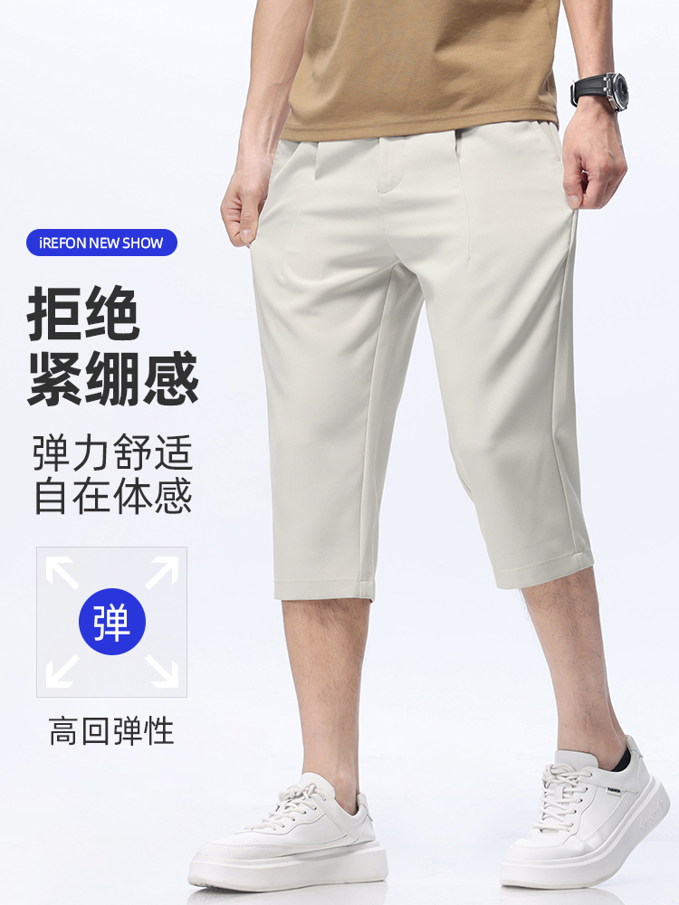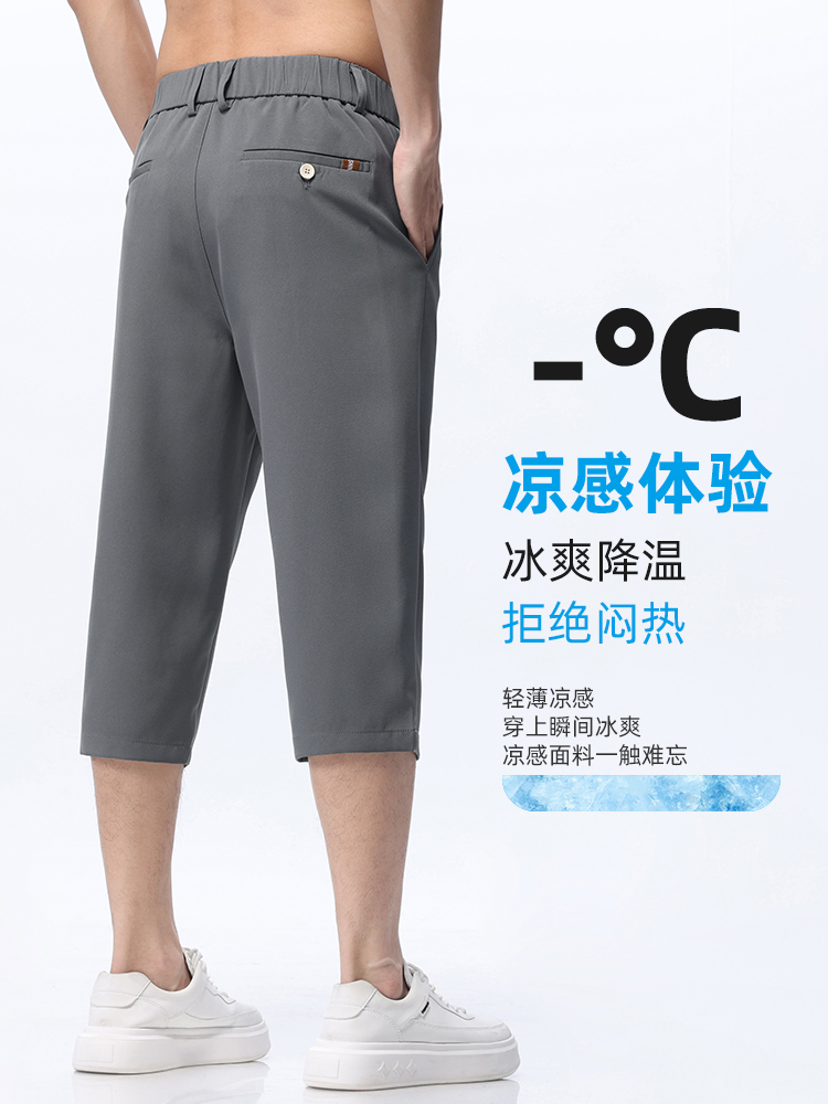 罗蒙2025夏季薄款休闲短裤男冰丝潮流新款速干七分运动弹力百搭裤
