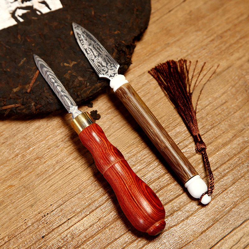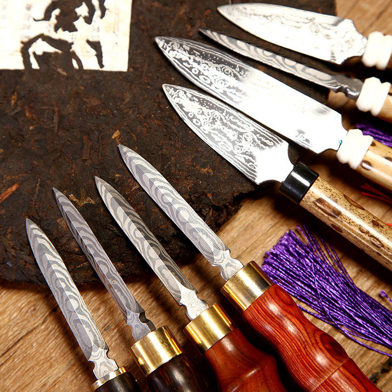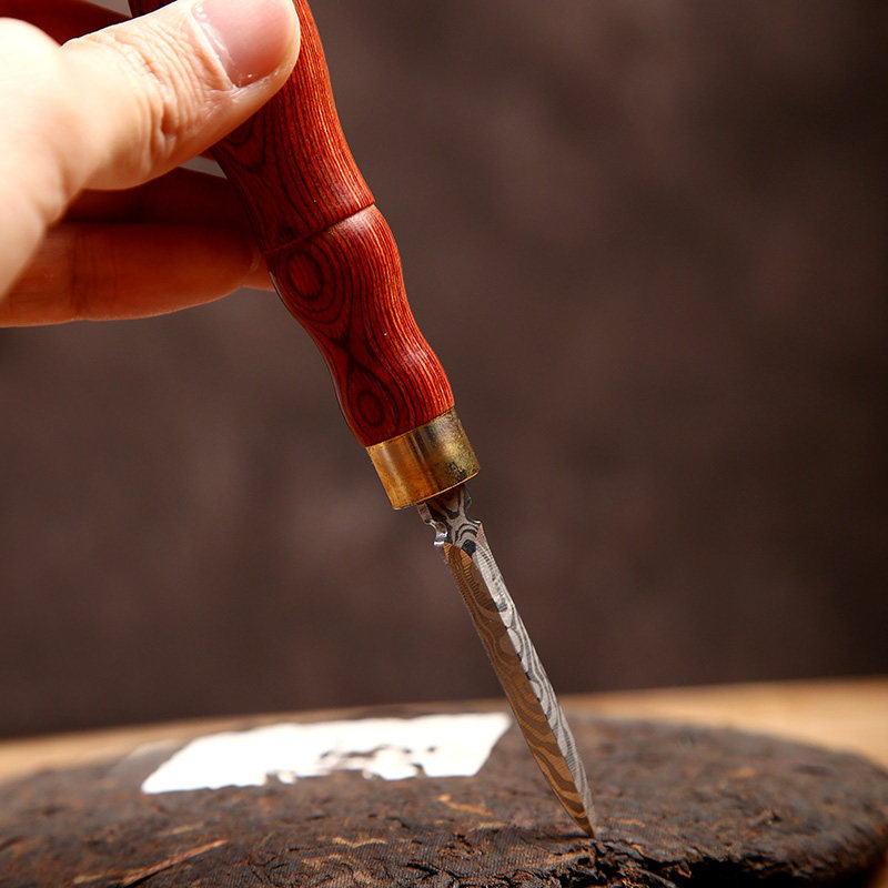普洱茶针大马士革茶刀不锈钢茶锥黑檀花梨木撬茶专用茶具茶道配件