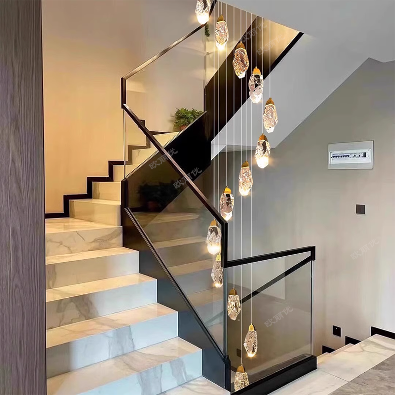 楼梯灯长吊灯水晶轻奢设计师别墅大厅挑空旋转楼梯间loft公寓吊灯