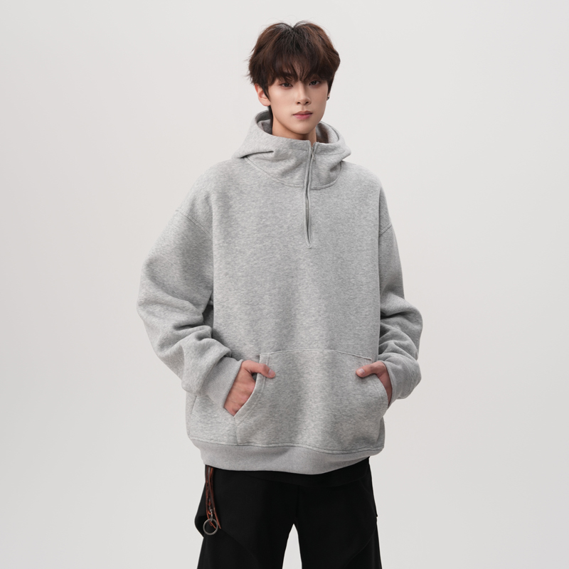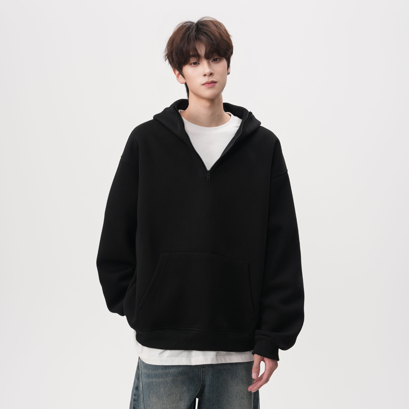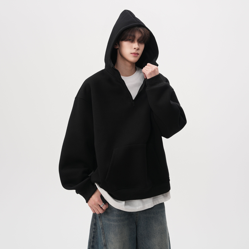 FOFWMODE 2025春季420G重磅半拉链连帽卫衣男女宽松休闲潮牌外套
