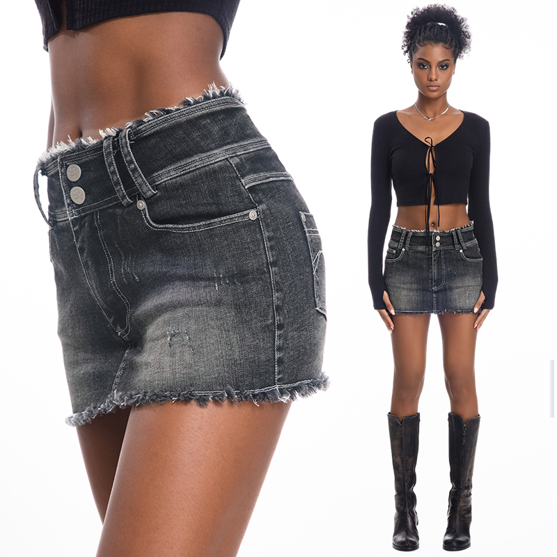ABMY 俏皮腿精 防走光复古牛仔裙水洗辣妹修身显瘦包臀半身裙裤