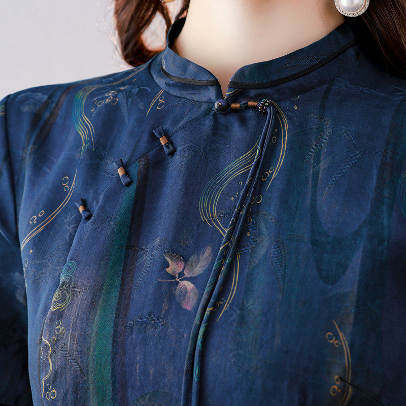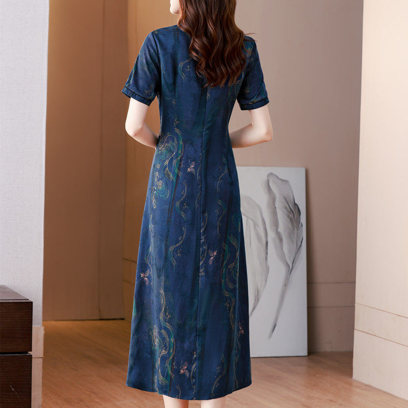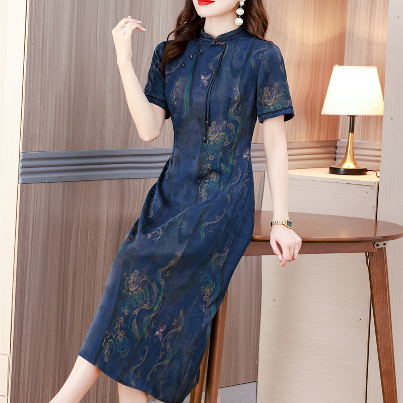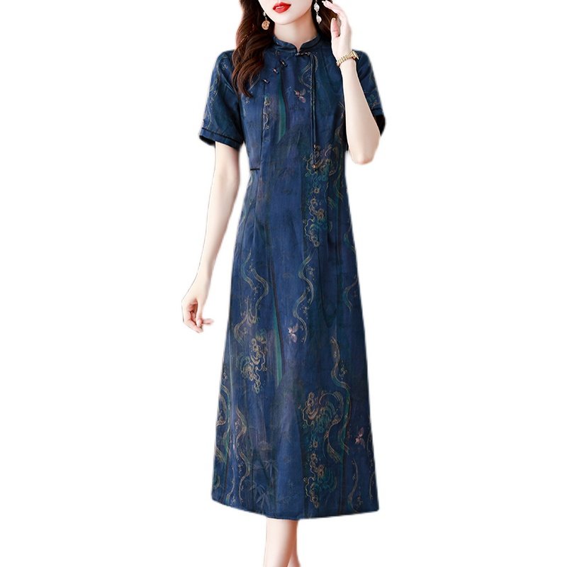 香云纱高端女装正品旗舰店中式连衣裙夏季新款桑蚕丝显瘦气质长裙