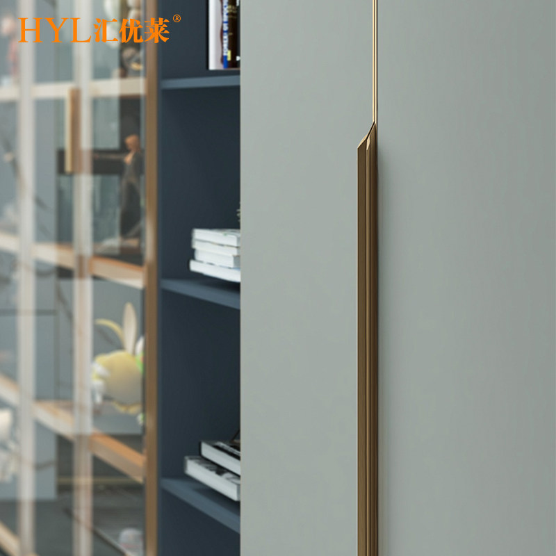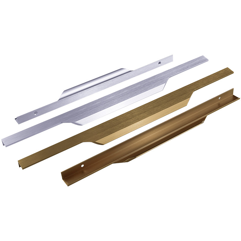 拉丝古铜金包边隐形拉手衣柜橱柜通顶抽屉拇指嵌入式单边门把手