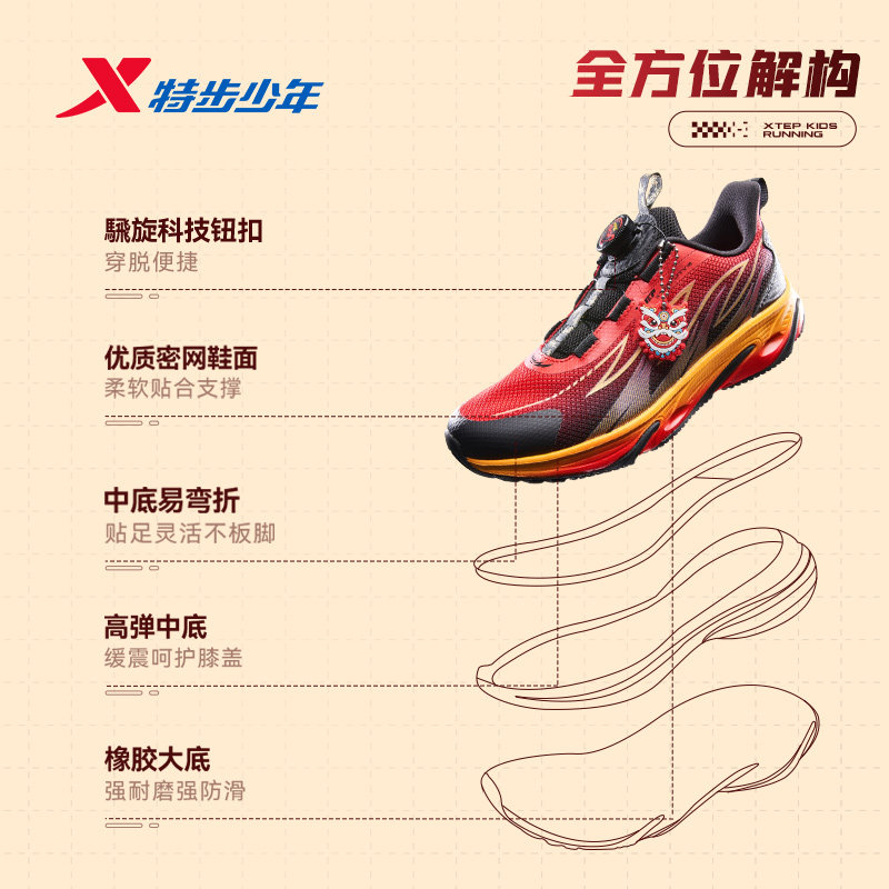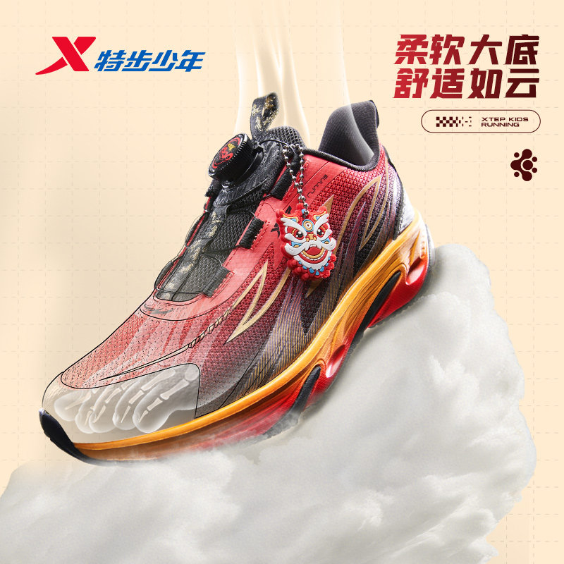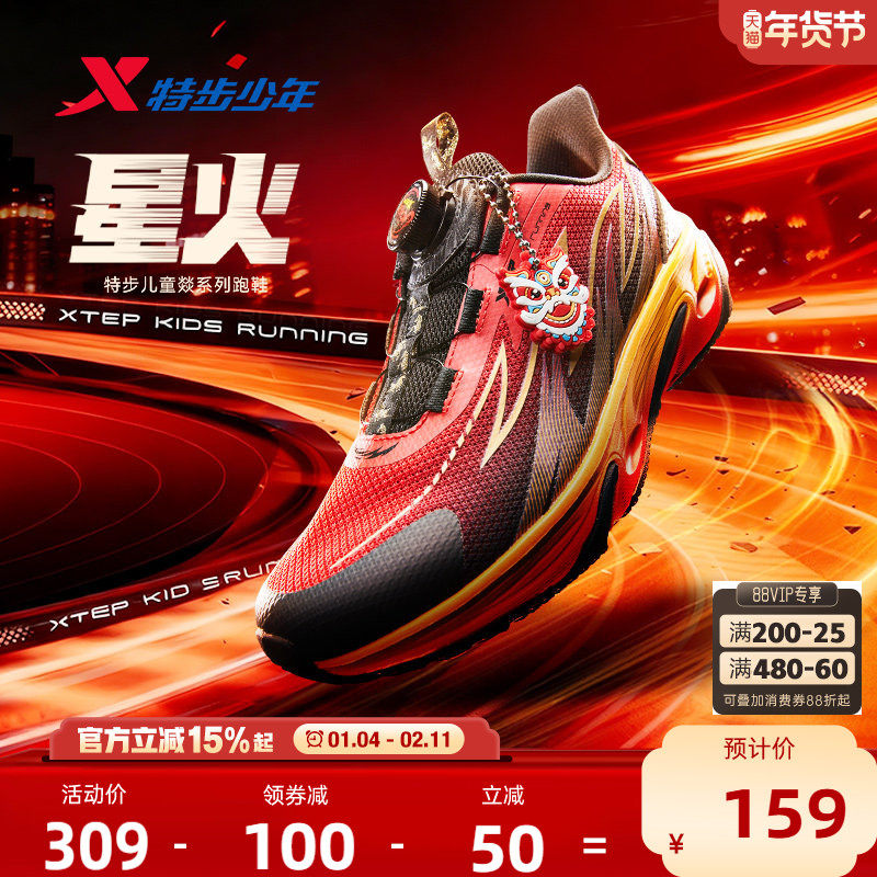 福燈贺岁|星火特步童鞋新年款中大童跑步鞋红色儿童运动鞋冬鞋