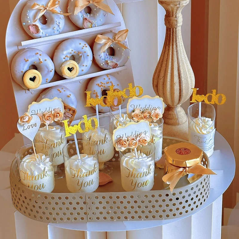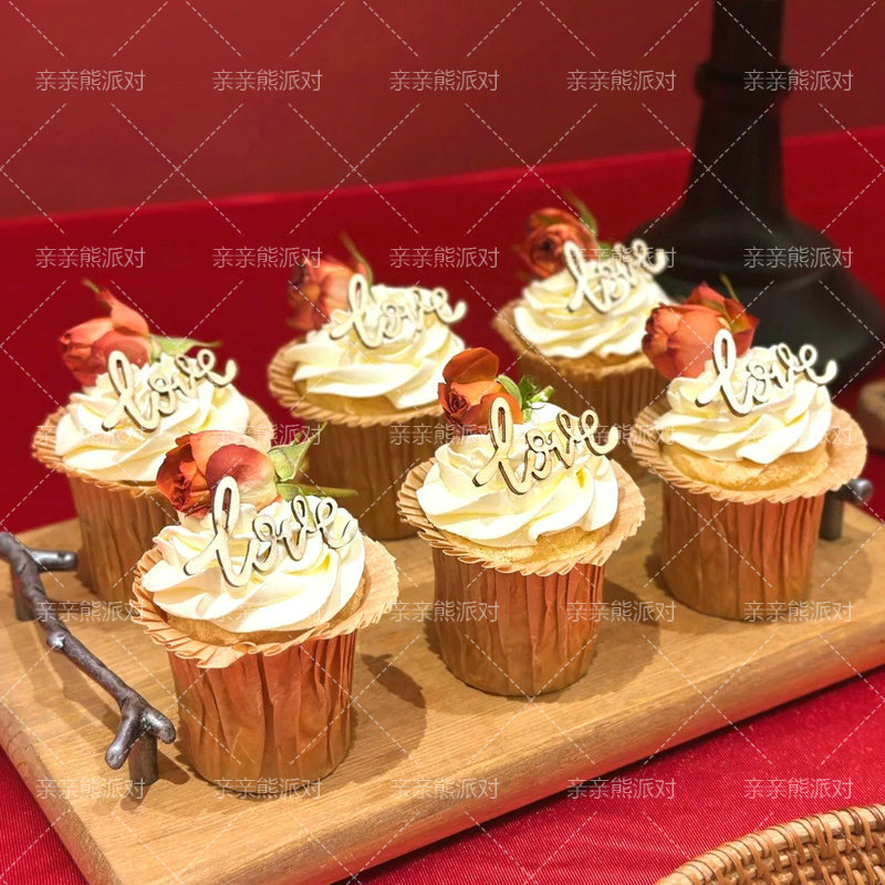 金色香槟色婚礼甜品台装饰订婚木质love蛋糕摆件礼帽纸杯插件插牌