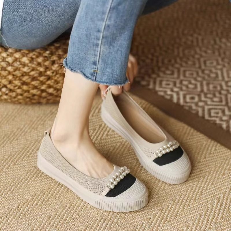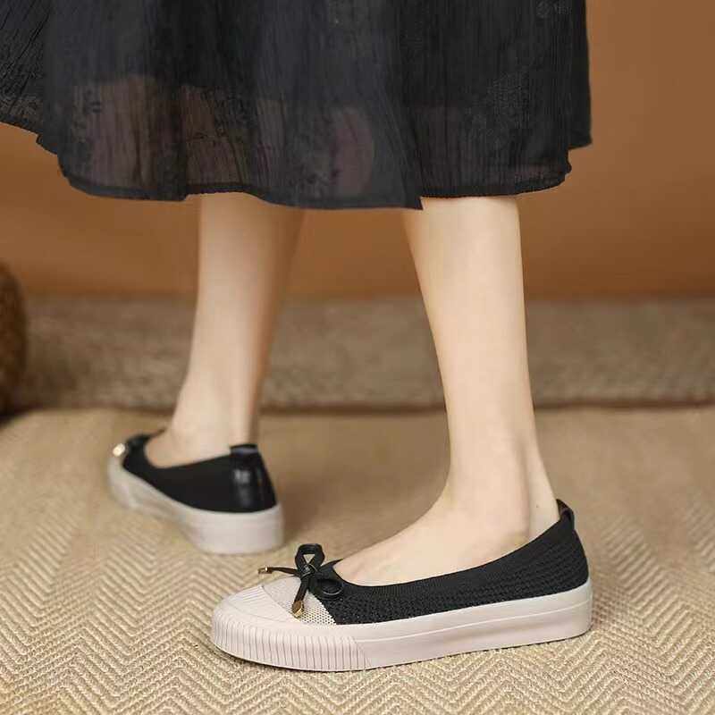 季天大东渔夫鞋2025浅口圆头单鞋女编织鞋飞织平底纯色厚底乐福鞋