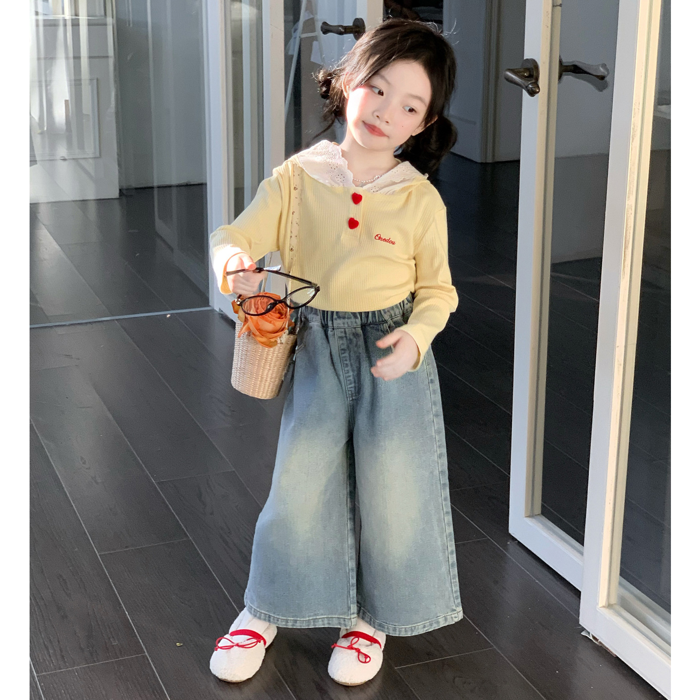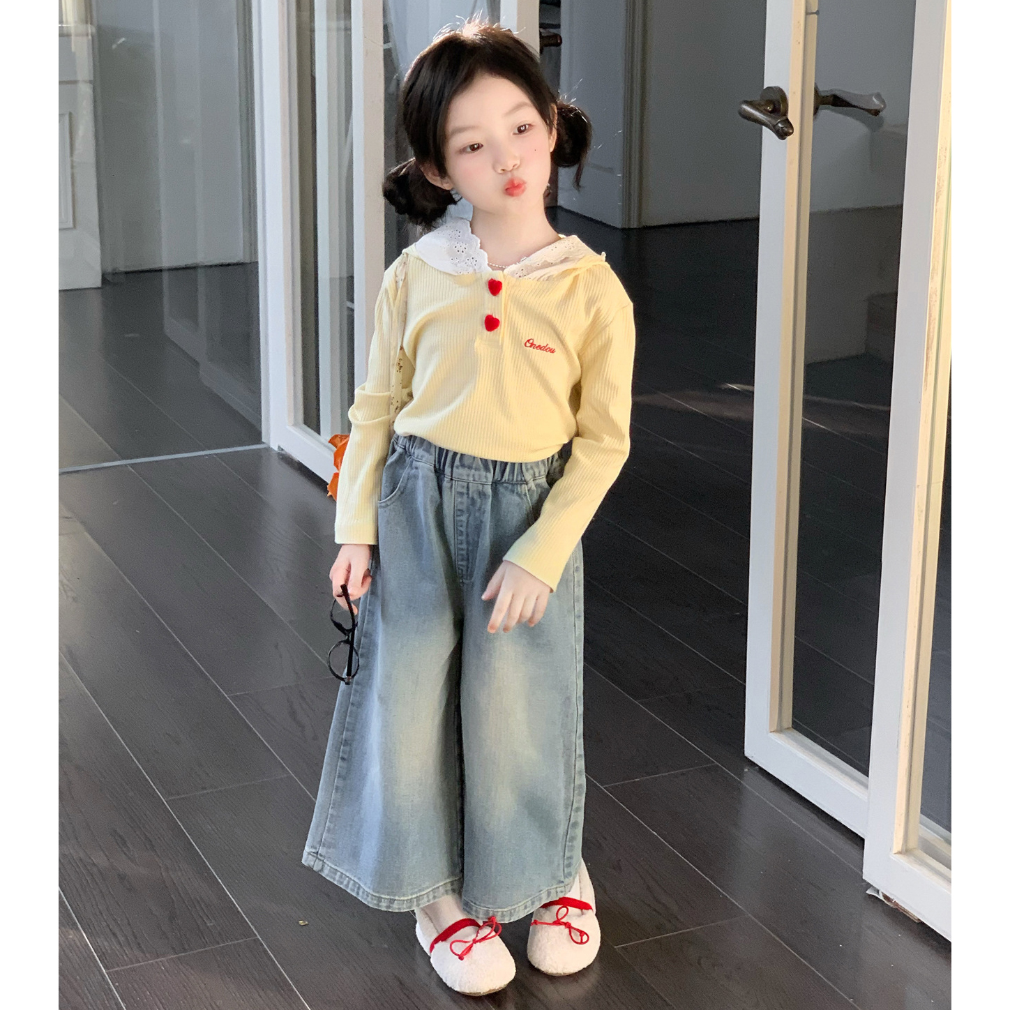 女童连帽t恤上衣蕾丝花边宝宝长袖打底衫爱心显白宝宝秋装百搭潮