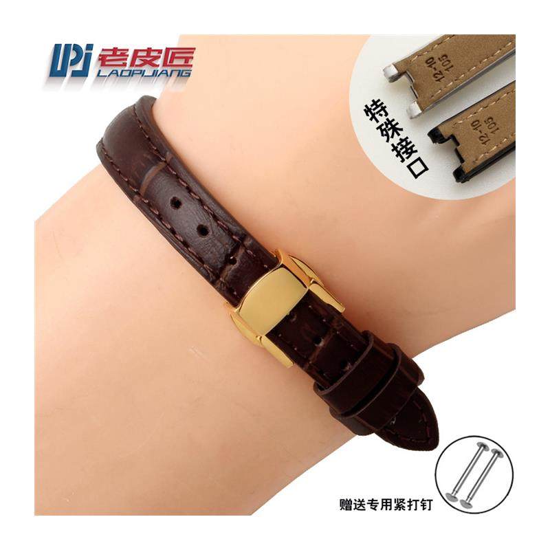 适配天梭1853弗拉明戈Tresnd系列T094210A女士凹口真皮手表带12mm