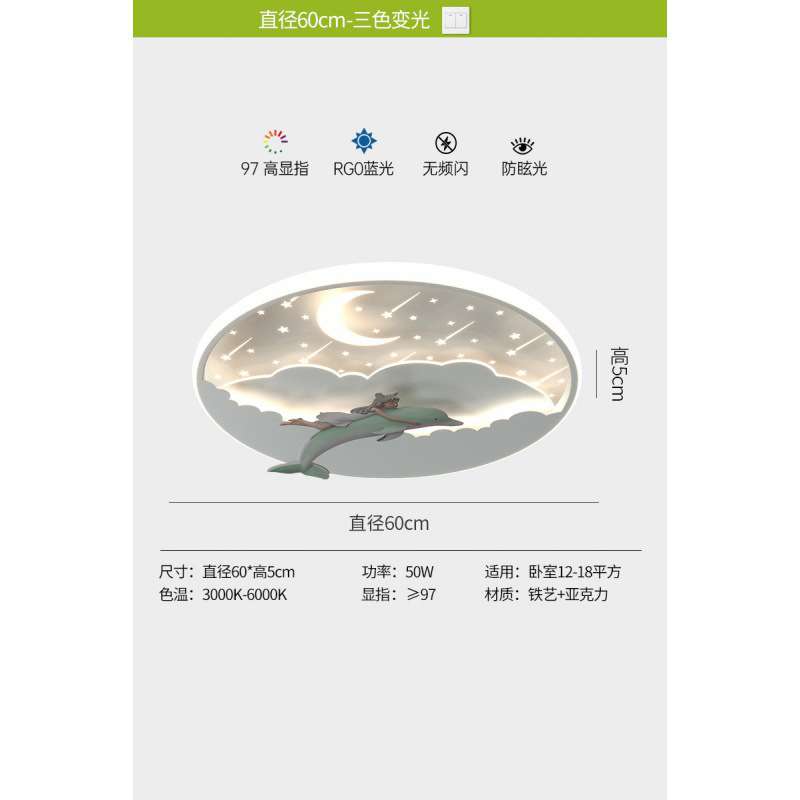 儿童智能护眼全光谱卧室吸顶灯创意海豚款led高显儿童护眼卧室灯