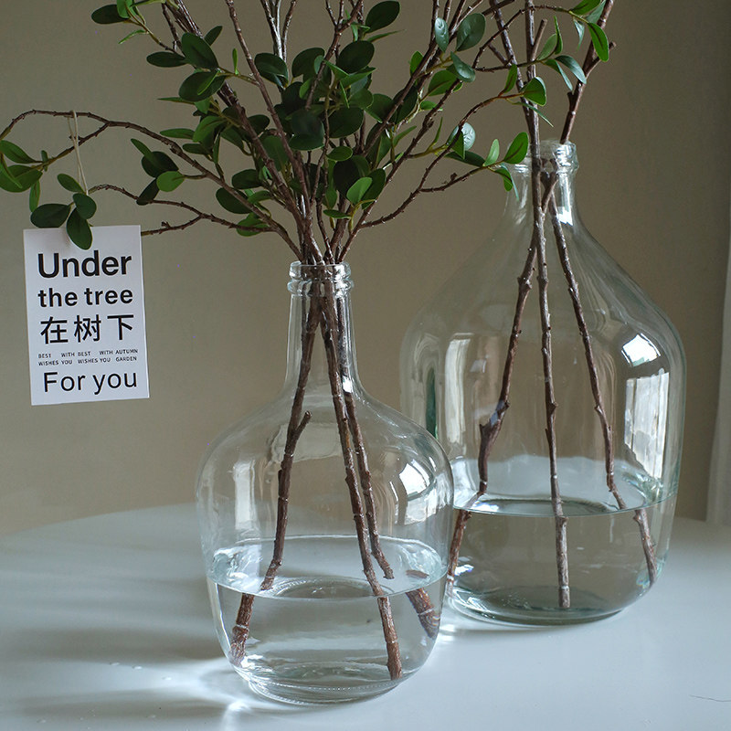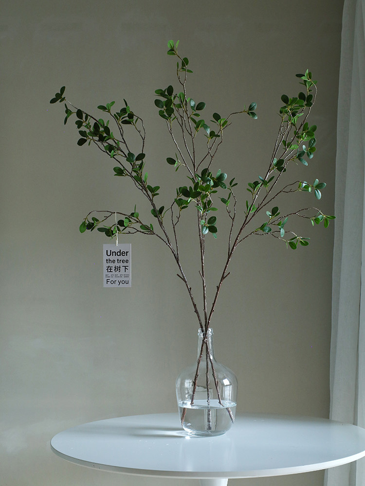 仿真椿树叶绿植假树枝植物装饰盆栽极简北欧网红吊钟室内落地摆件