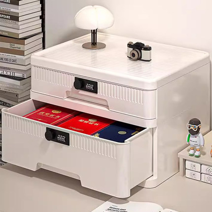 抽屉式收纳柜家用大容量带锁储物柜办公桌面桌下证件文件柜密码箱