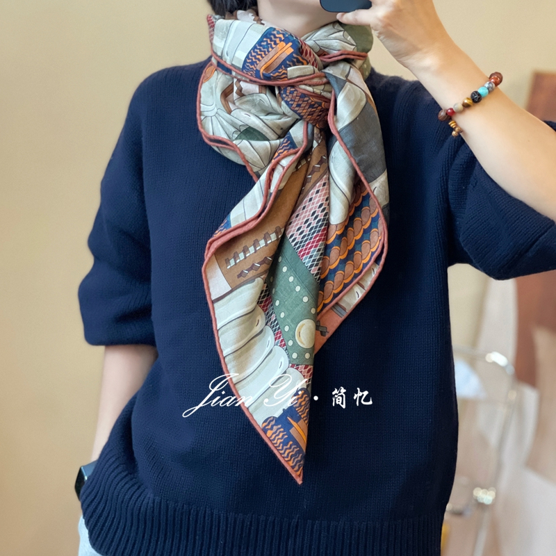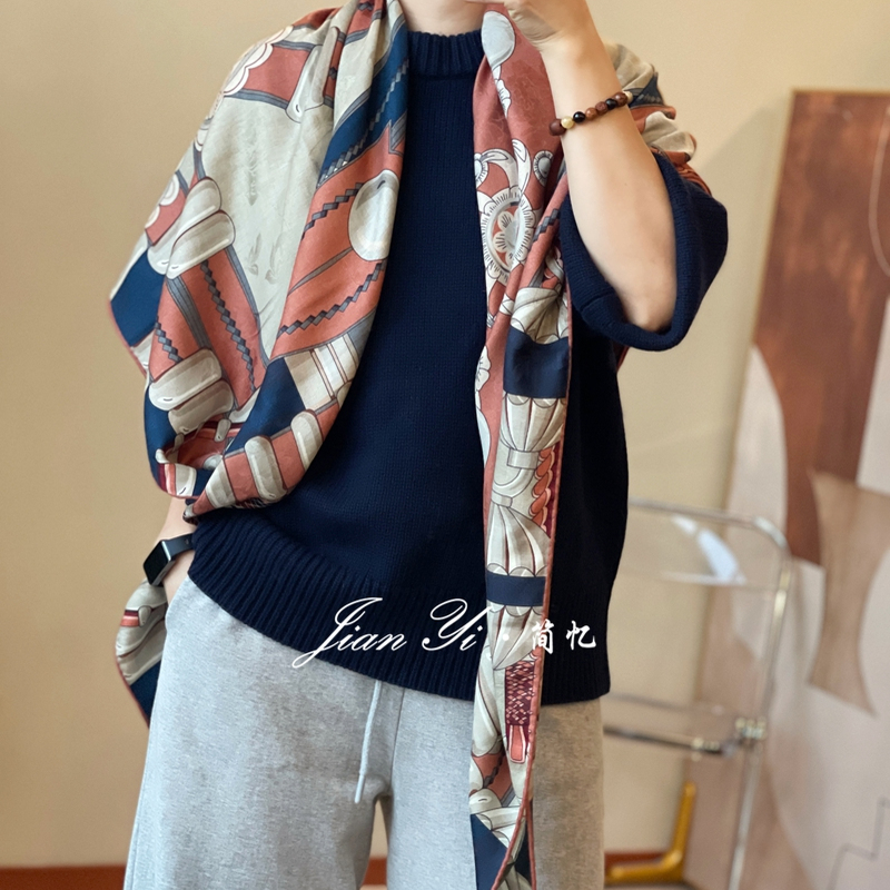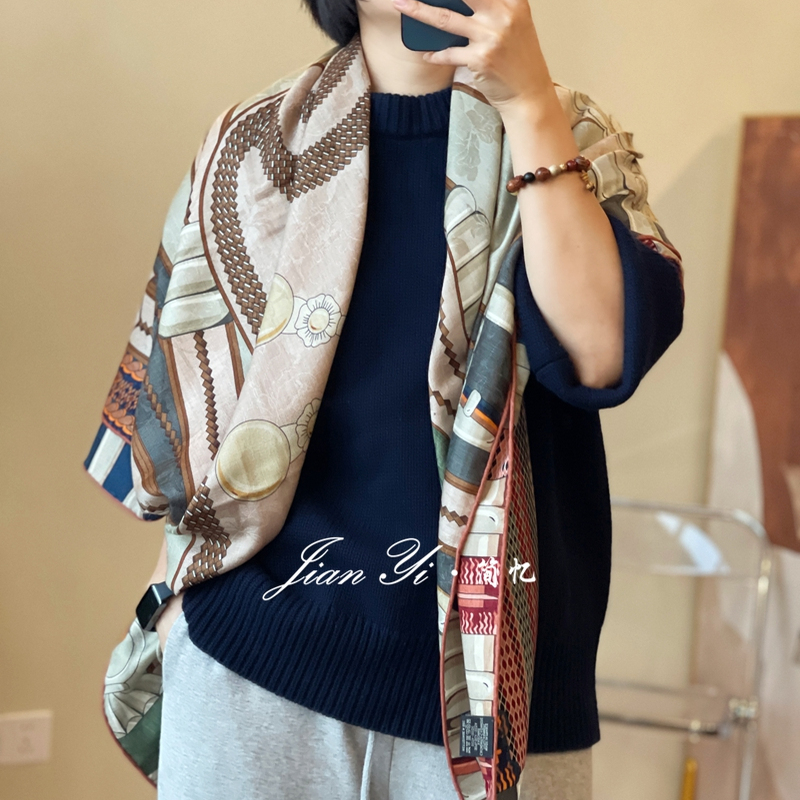 【银花集】优雅气质真丝桑蚕丝羊毛130大方巾双面丝巾围巾披肩女