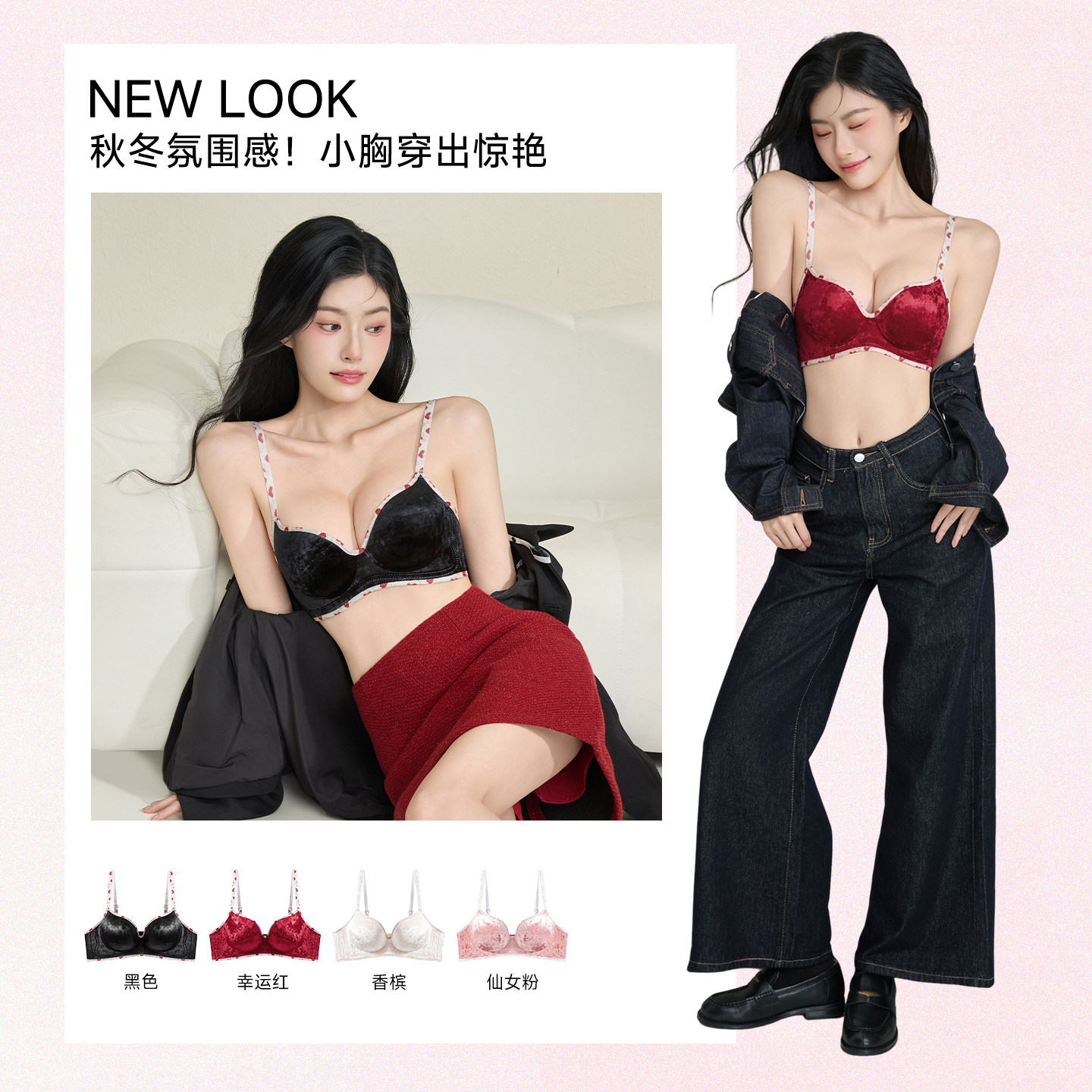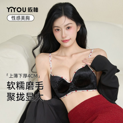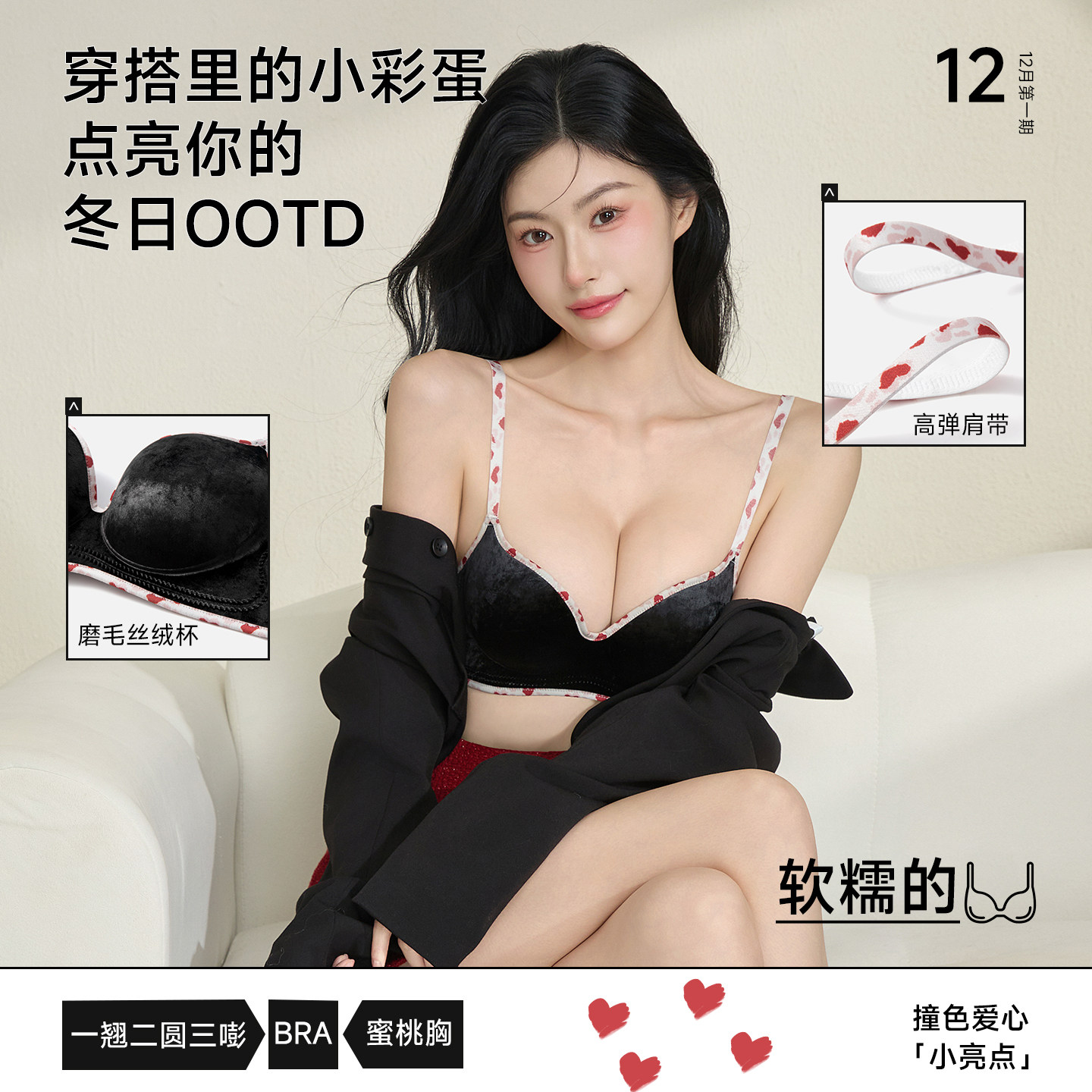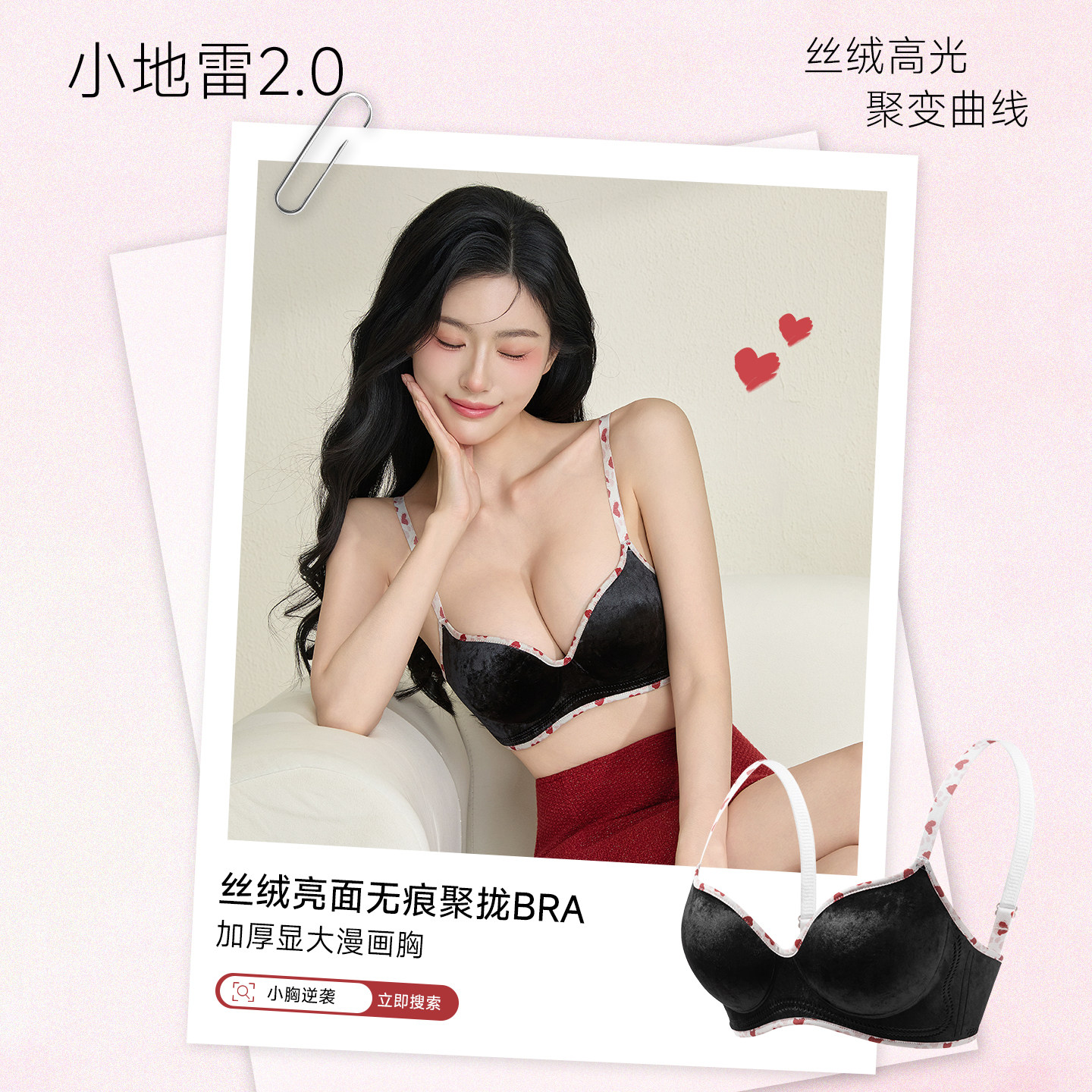 馒头杯内衣女小胸聚拢加厚显大收副乳防下垂性感肩带可外露文胸罩