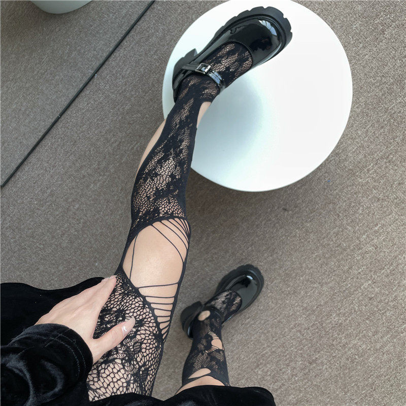 撕裂破洞渔网袜 手撕视觉连裤袜新款潮流渔网袜女生街头穿搭丝袜