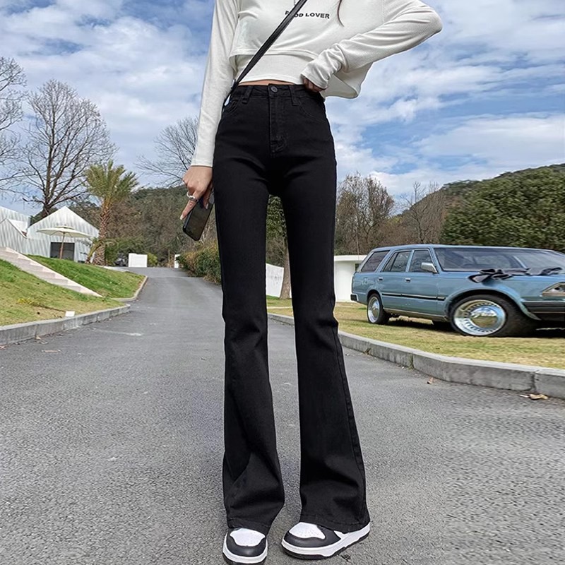 黑色微喇牛仔裤女2025春秋新款高腰显瘦休闲弹力喇叭裤韩版马蹄