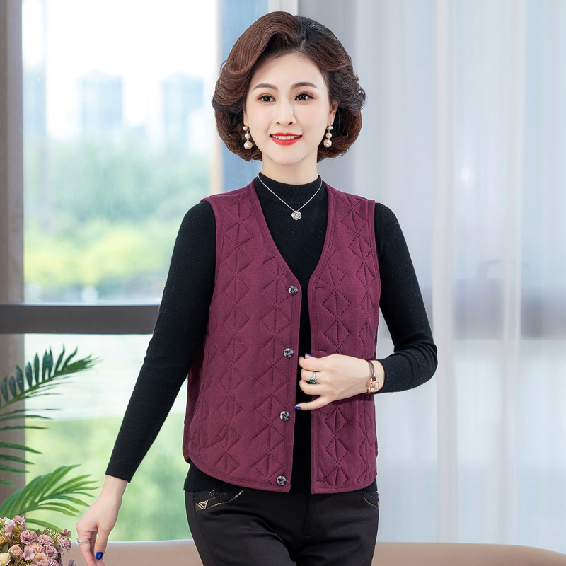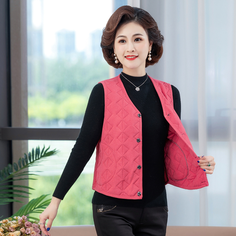 中老年女装内外穿夹棉德绒蚕丝棉马甲妈妈秋冬短款保暖无袖软背心